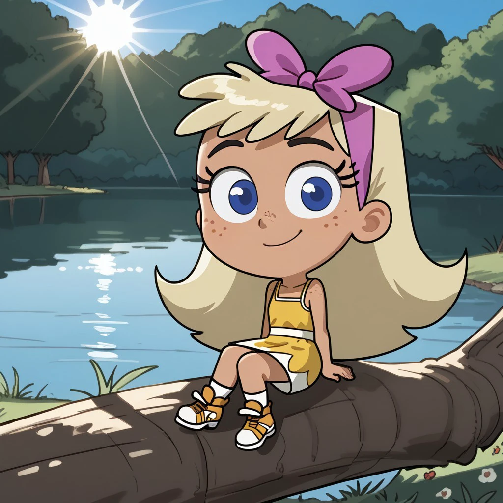 chloe_fop, long hair, blonde hair, blue eyes, freckles, hair bow