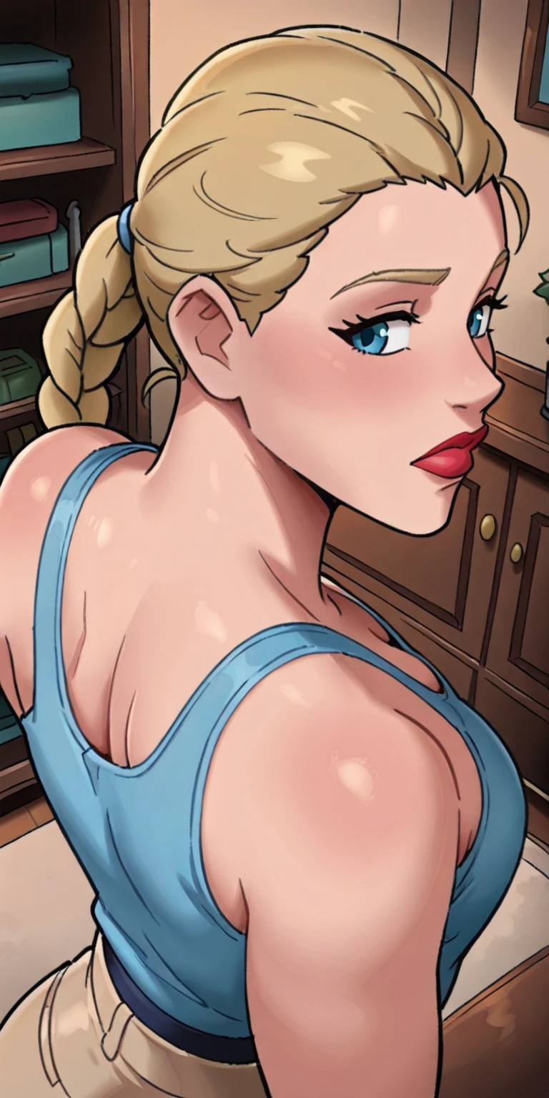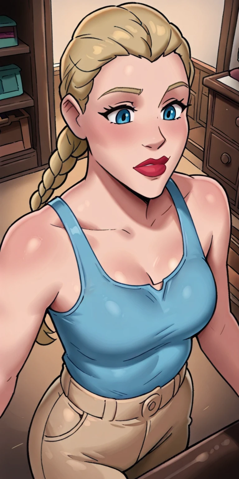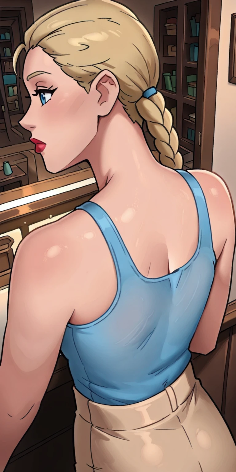 Base prompts:ydsovietgirl, 1girl, braid, single braid, blonde hair, blue eyes, lipstick
