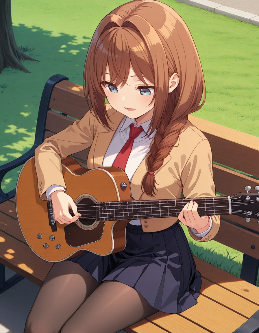 <lora:rikka_inohana-mayonaka_heart_tune-s1-ixl-anime-soralz:1>, rikka inohana (mayonaka heart tune), long hair, side braid, brown hair, hair intakes, hair over shoulder, blue eyesOutfit - School Uniform