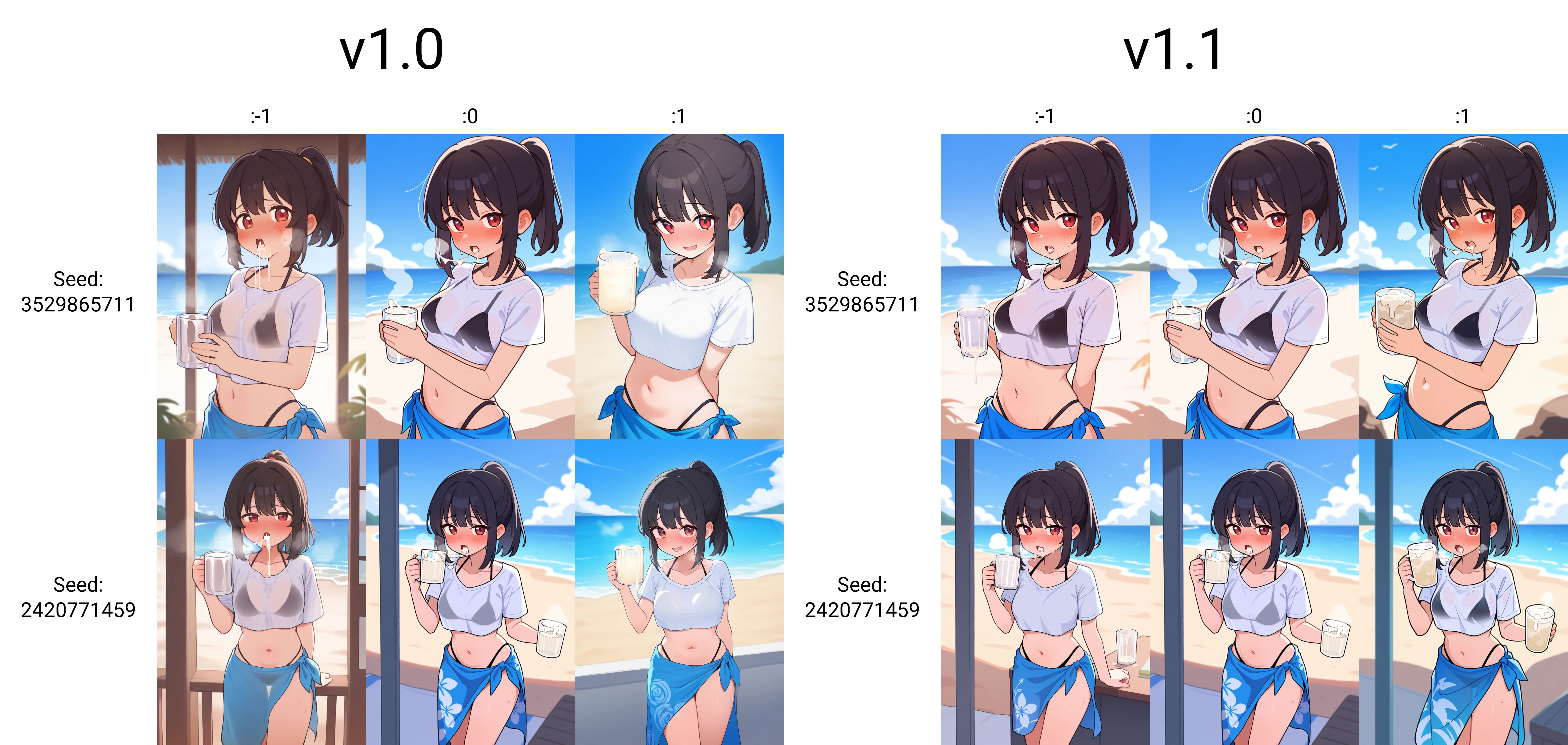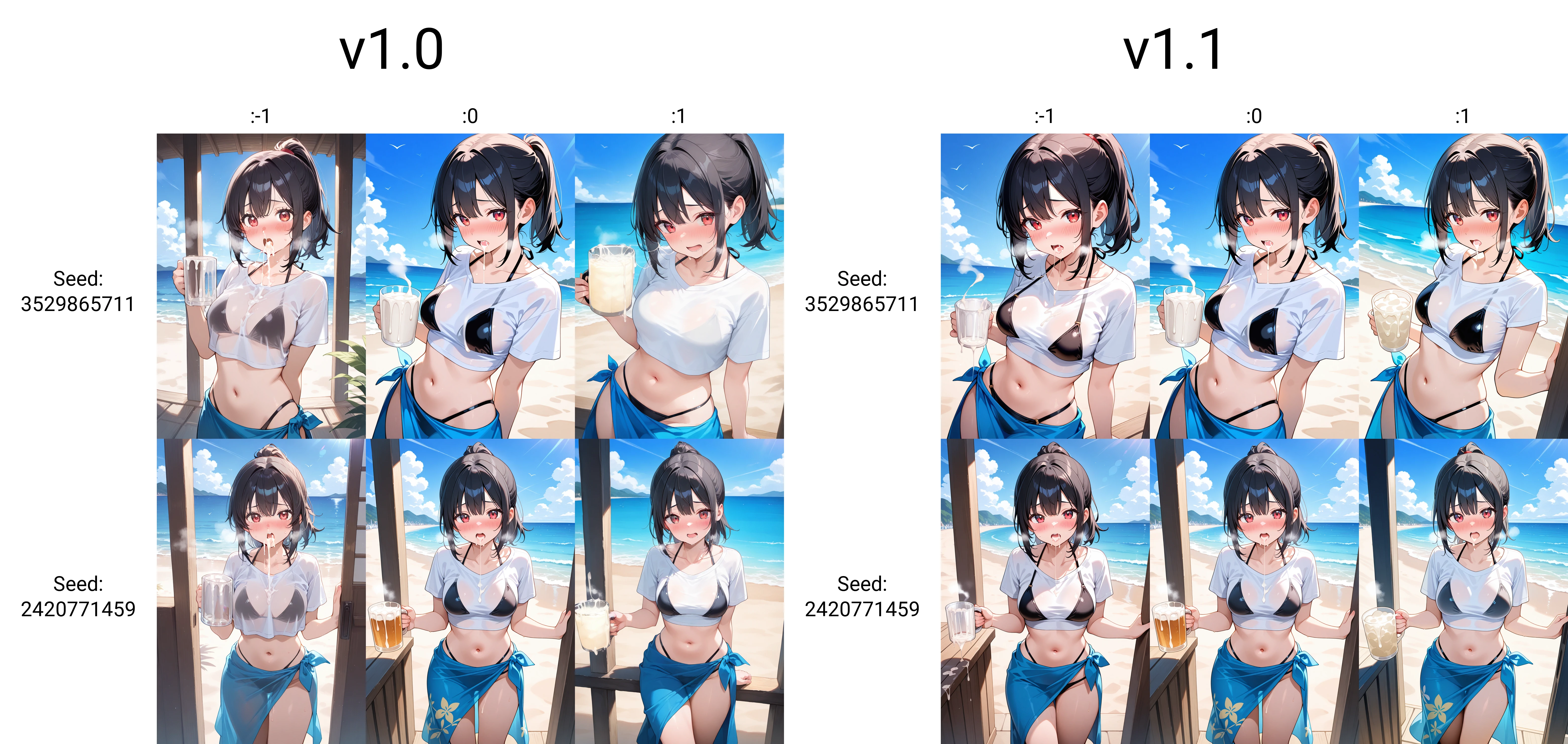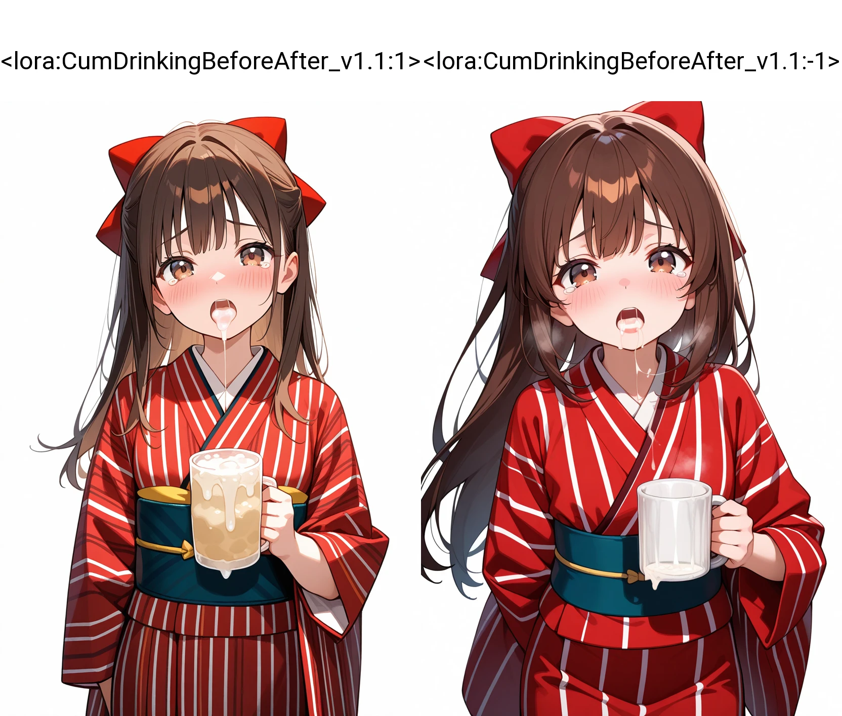 ザーメンジョッキでごっくんする前後を表現するためのLoraです。 Loraのウェイトを1にすると前になり、-1にすると後になります。