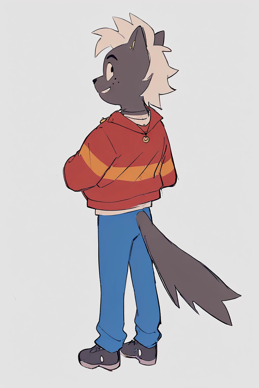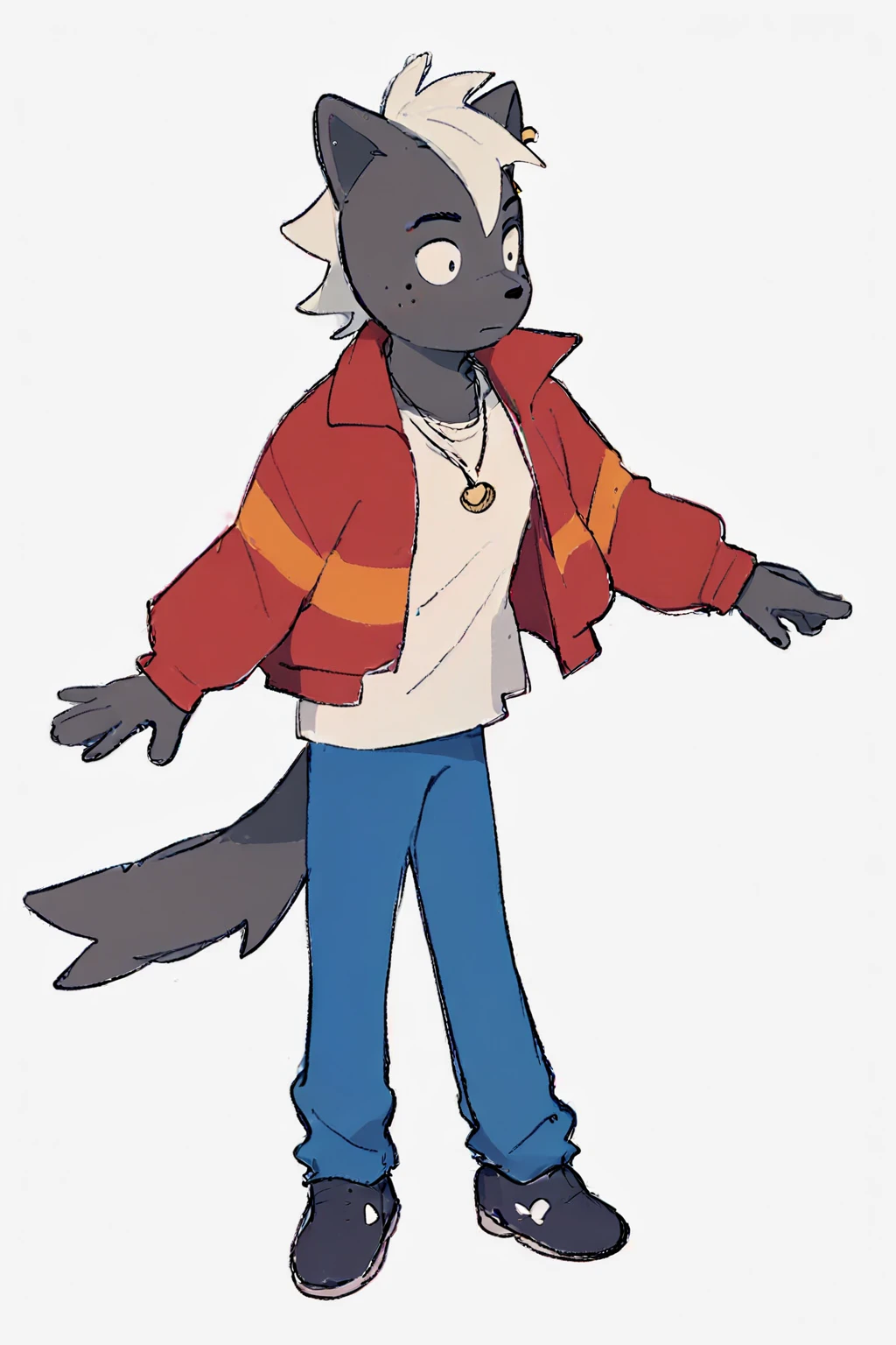 main tags: shunimai, skunk boy, furry male, white hair, dark gray fur, ear piercing, freckles