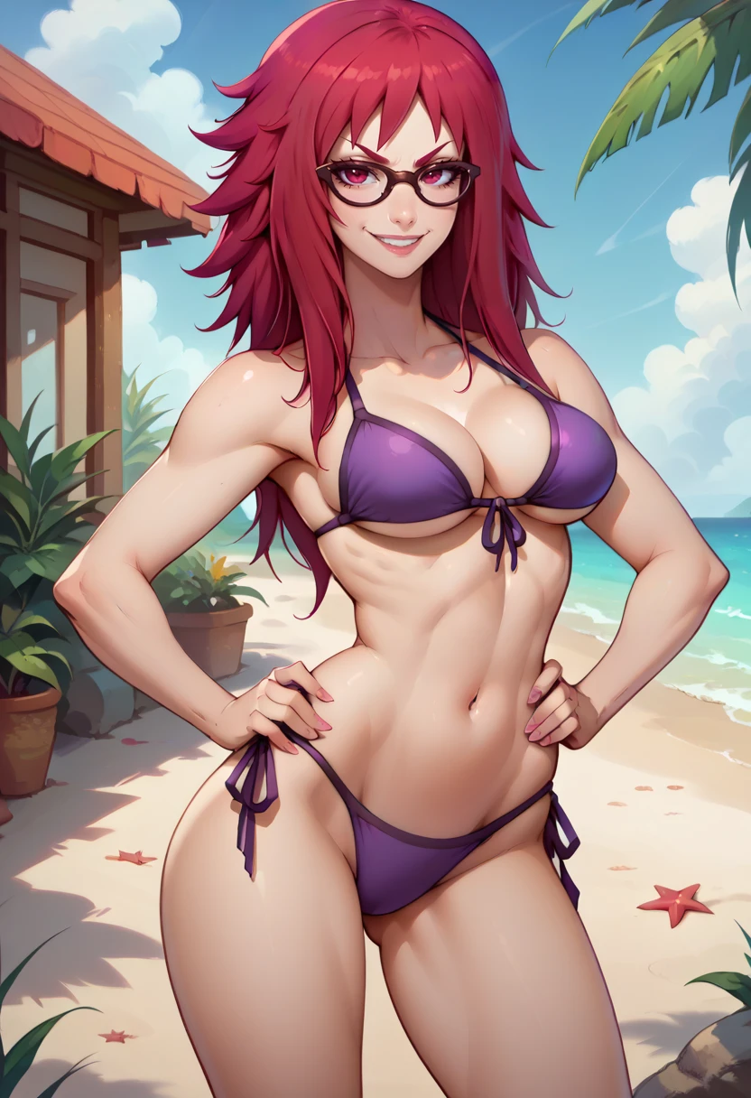 Default Outfit: glasses, purple jacket, long sleeves, black shorts, black thighhighs