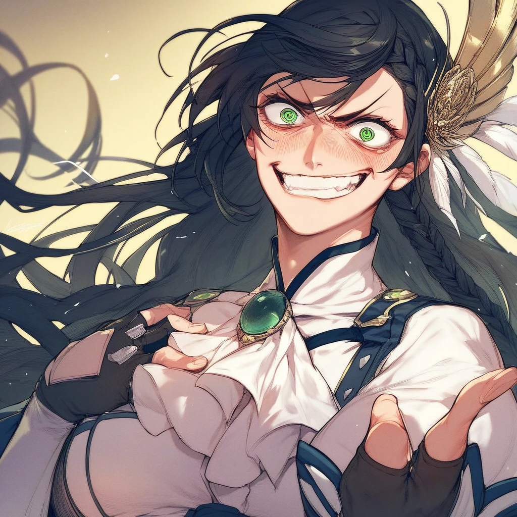 brunhildep, black hair, green eyes, very long hair, bangs,