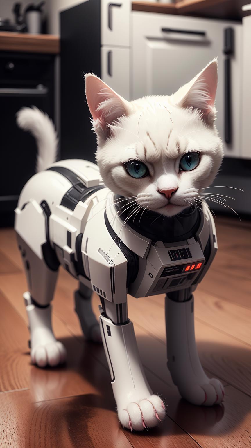 TheEmpireStyle, white, cat, hi-tech plastic <lora:TheEmpireStyle:1>