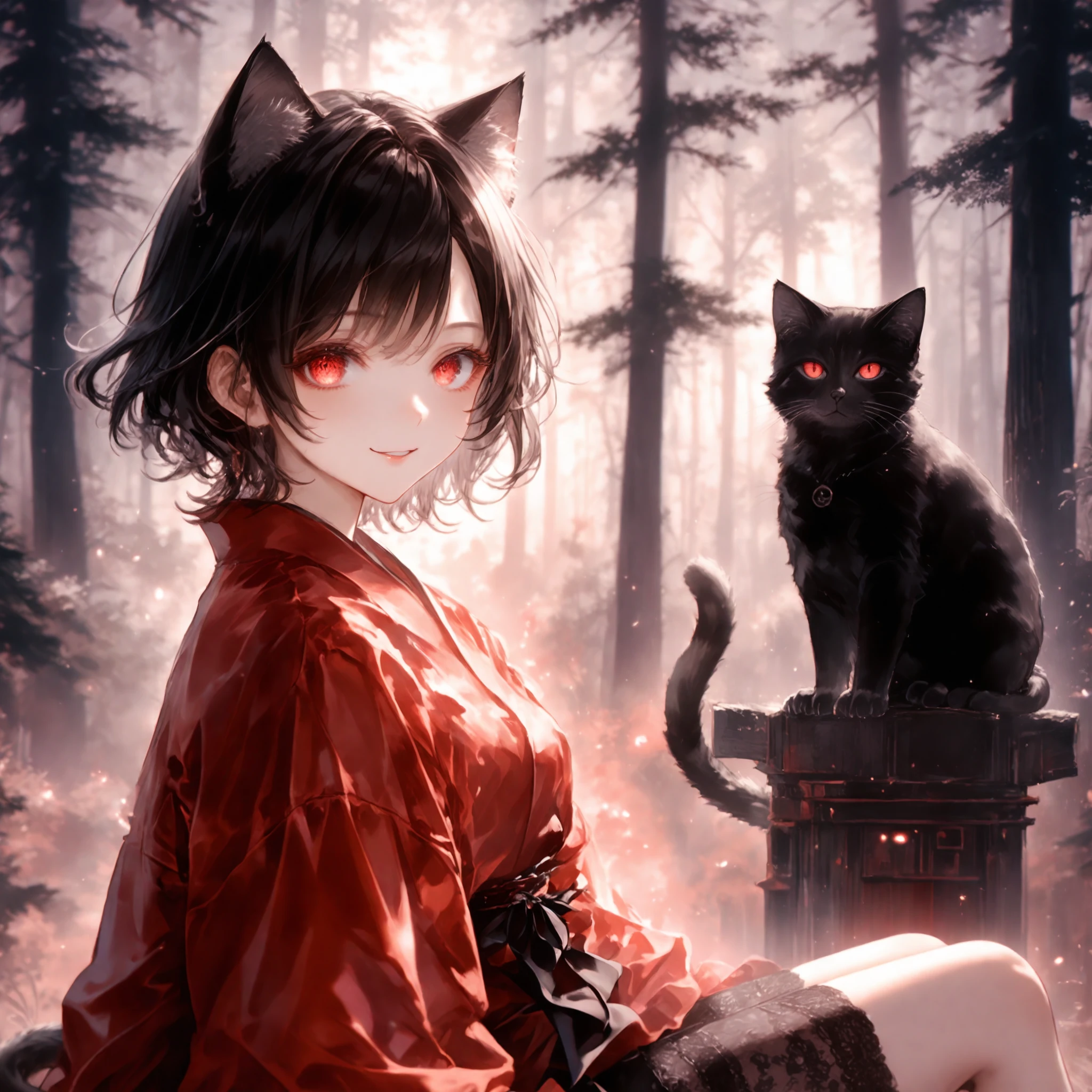 Prompt: nijistyle, masterpiece, best quality, amazing quality, very aesthetic, highres, ultra detailed, aged up, looking at viewer, :O, kneeling, hands up, claw pose, full body, four fingers and thumb, open mouth, 1girl, azusawa kohane, project sekai, low twintails, blonde hair, beige eyes, small breasts, hamster girl, light brown hamster girl, hamster ear, miko, dark, glowing background, japanese shrine, red torii, huge torii, glowing japanese lantern,