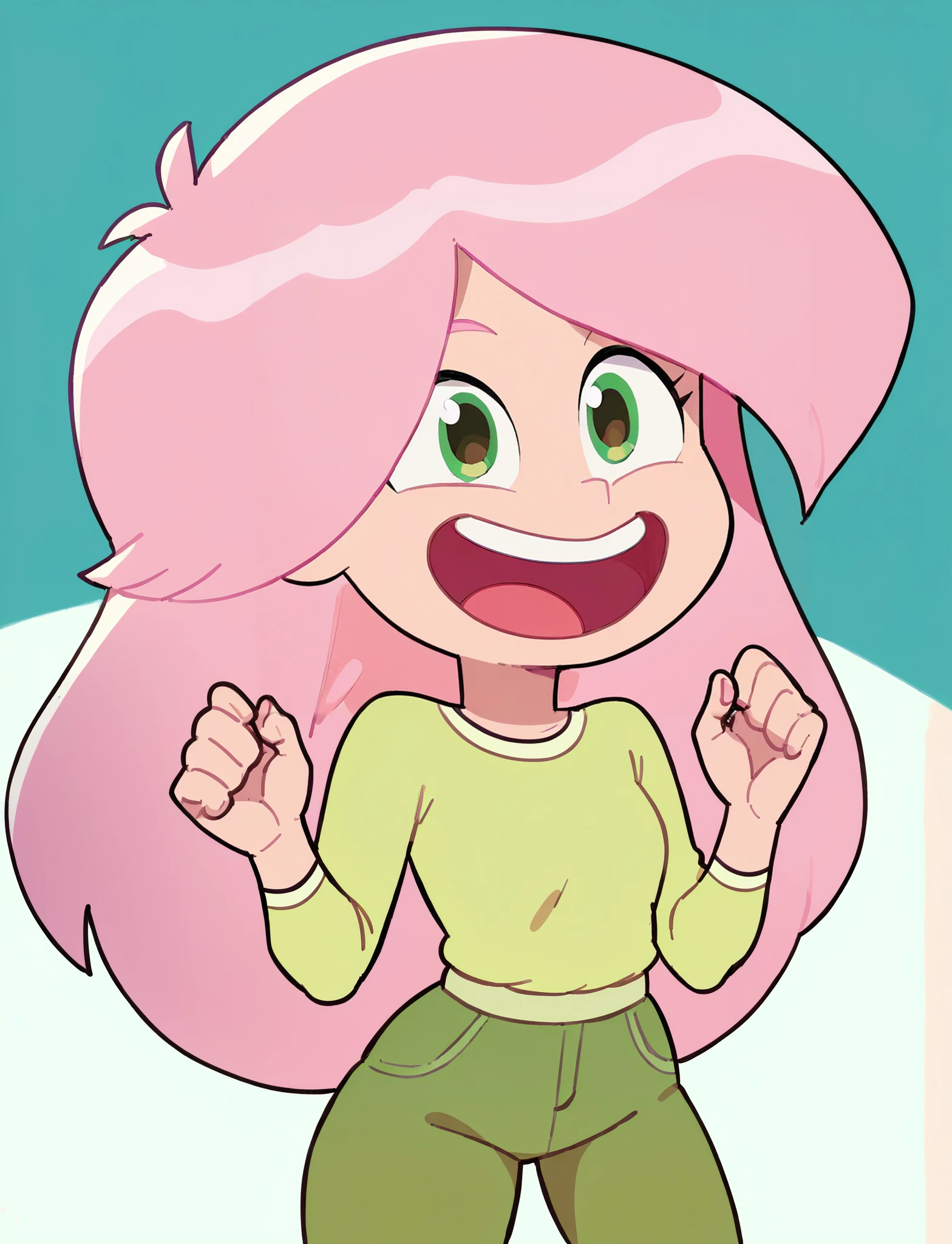 Outfit: green shirt, green pants, capri pants, sneakers,
