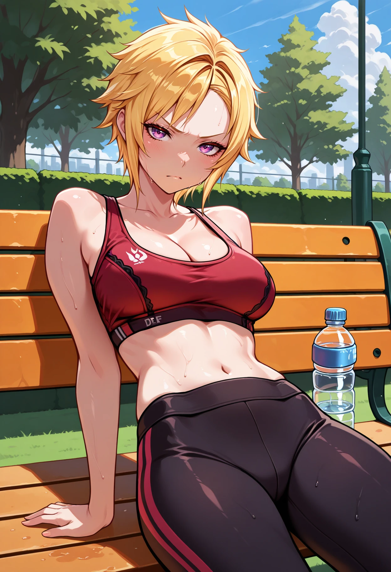 Custom outfit: defMilady, blonde hair, short hair, purple eyes