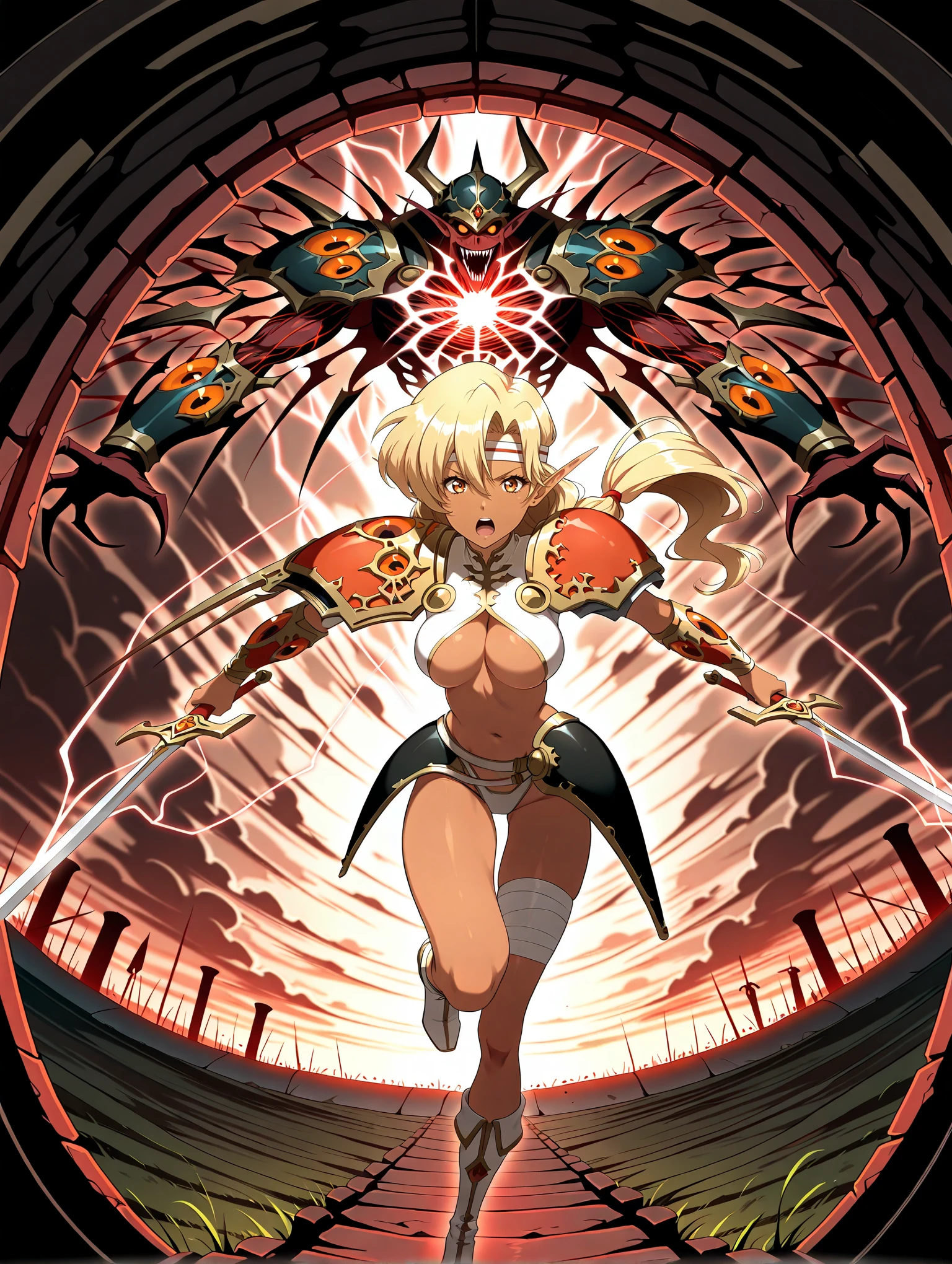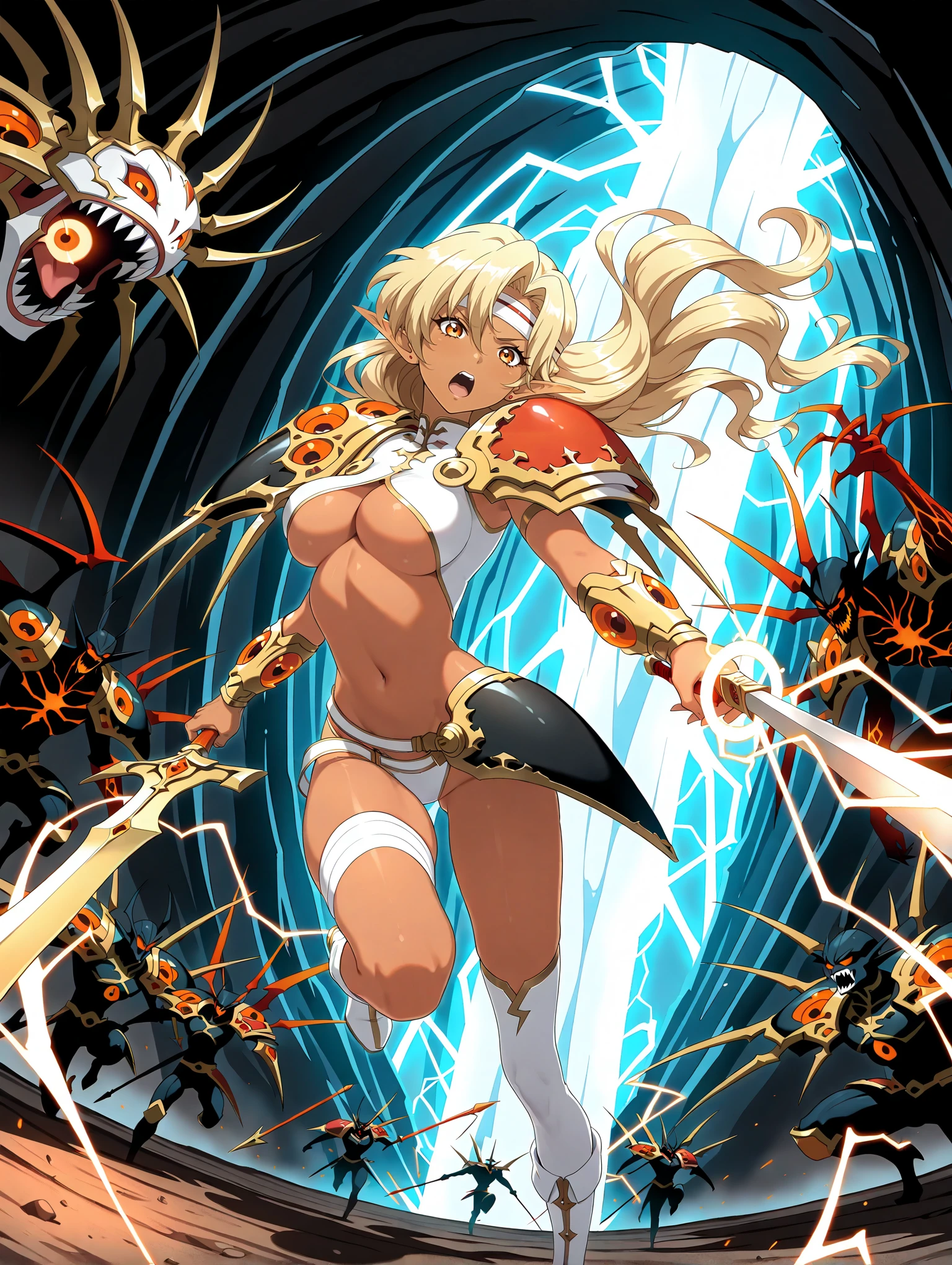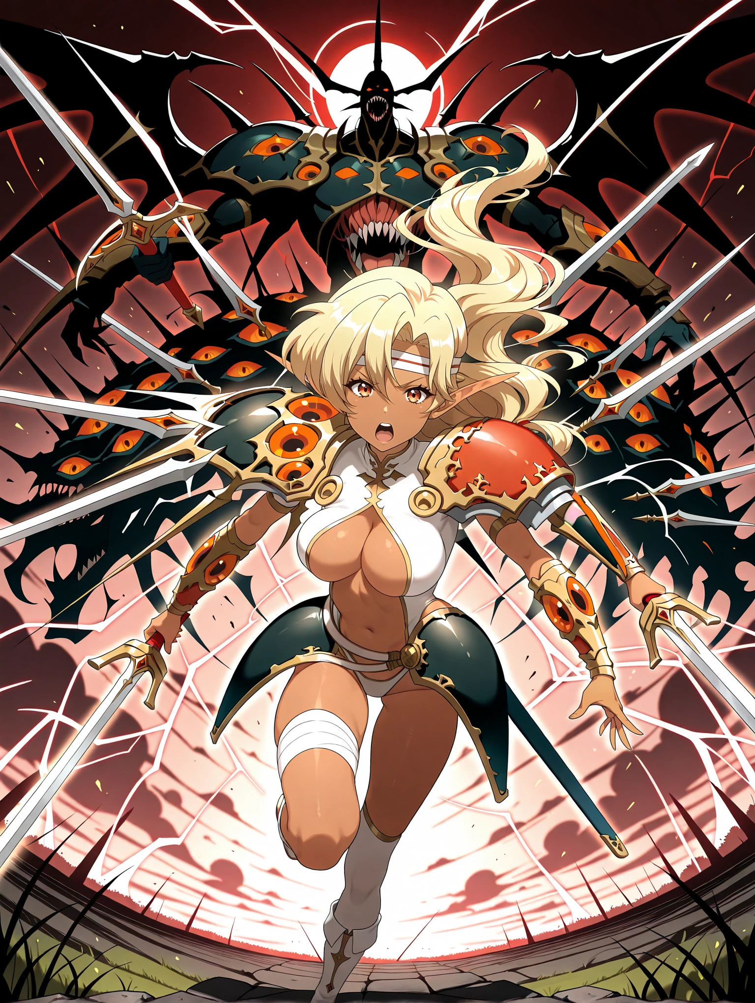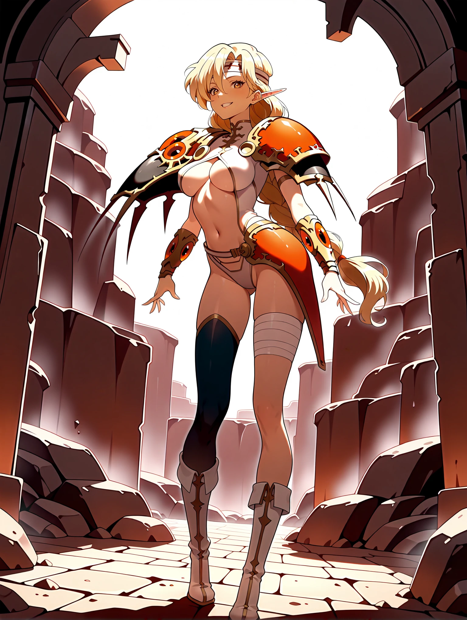 sonia,pointy ears,dark-skinned female,headband,long hair,blonde hair,