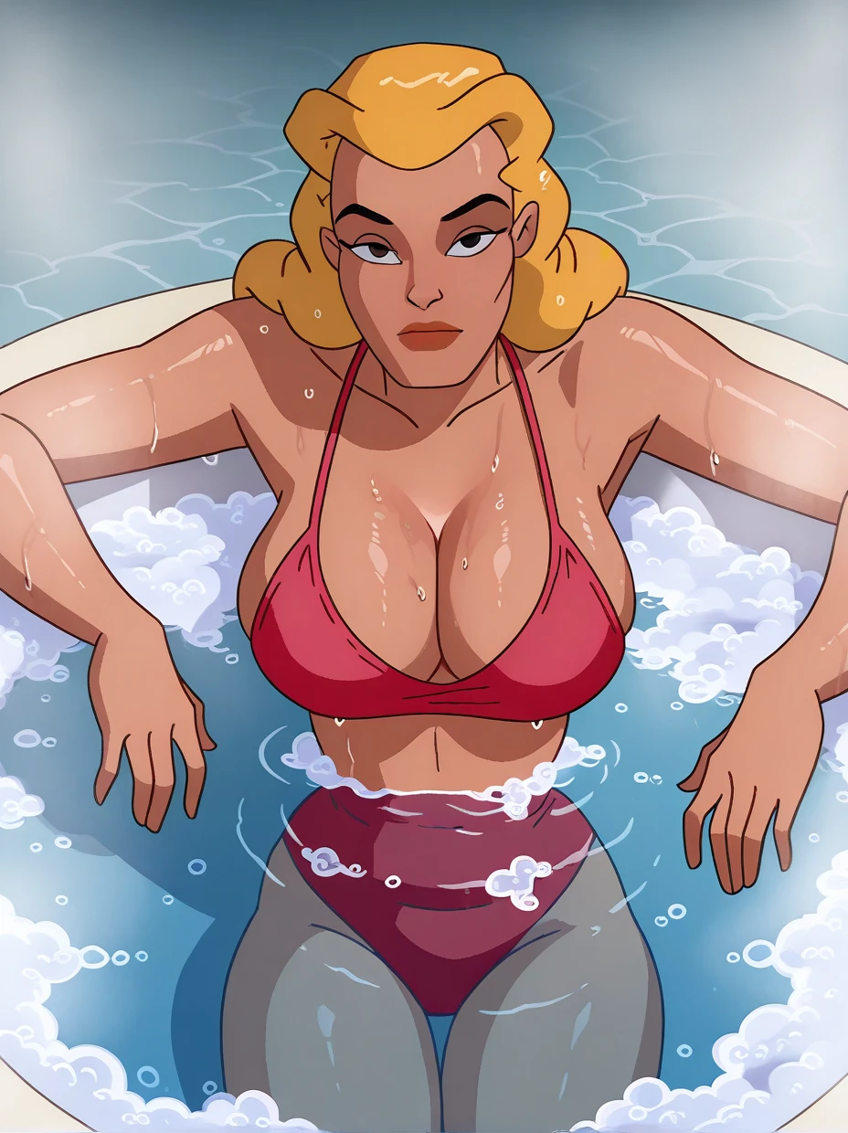 Francine and/or Half Transformed: blonde hair, long hair, pink jacket, white shirt, pink pants