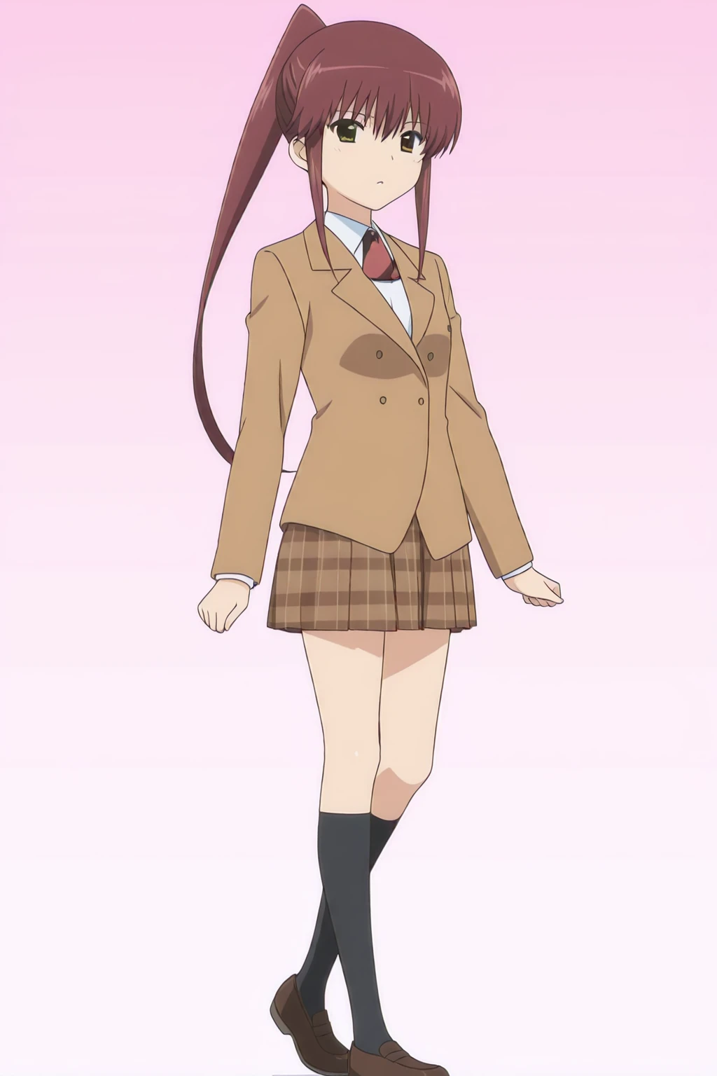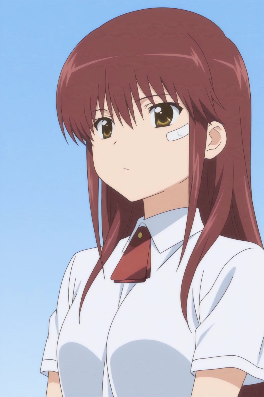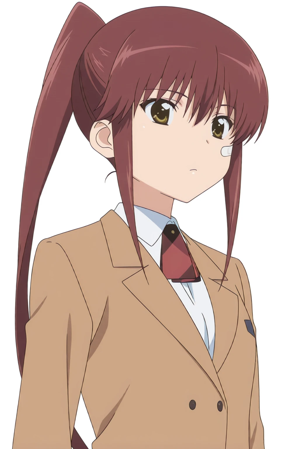 bandaid on face, blazer, jacket, long hair, long sleeves, ponytail, school uniform, shirt, sidelocks