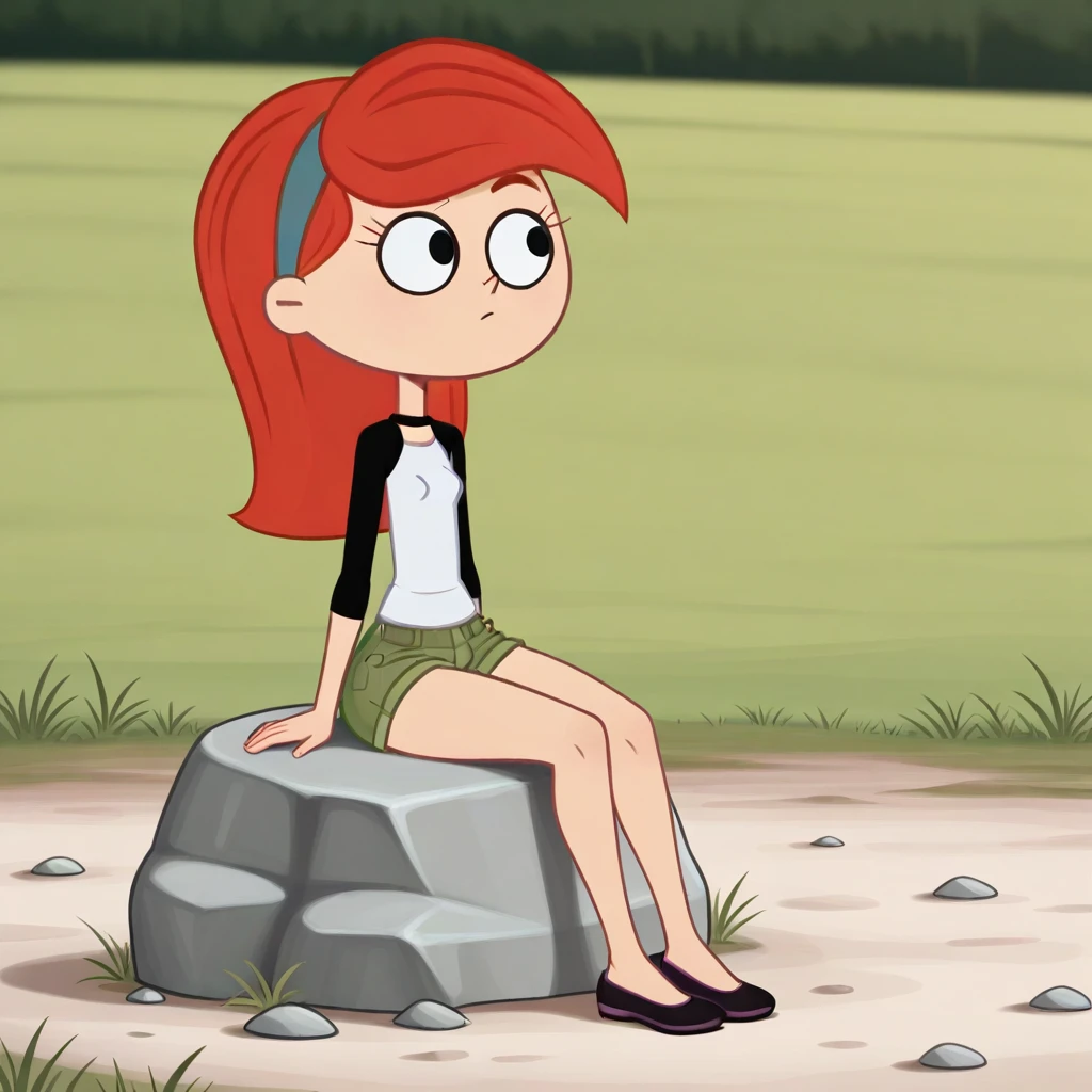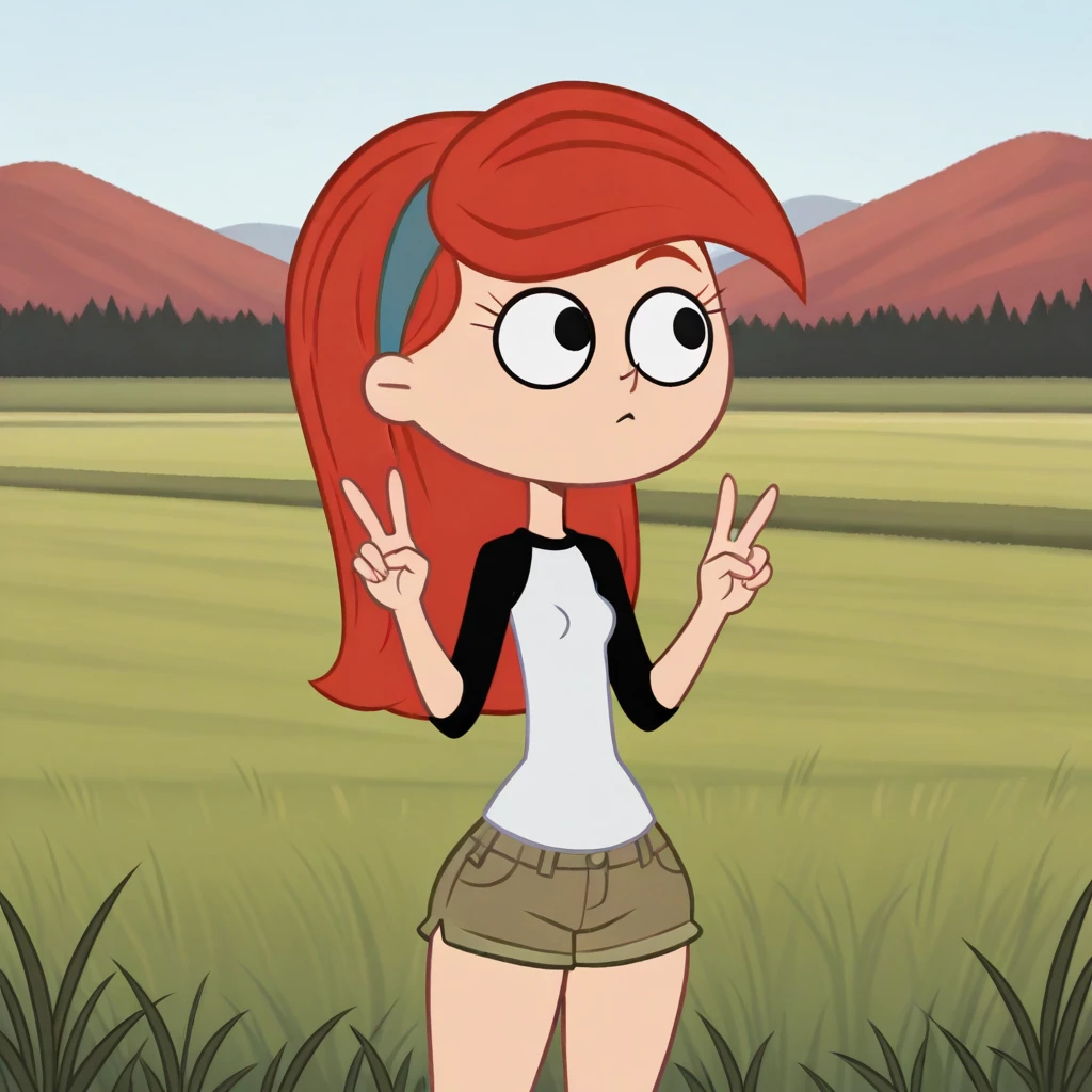 chloe, 1girl, solo, red hair, long hair, headband, black eyes,