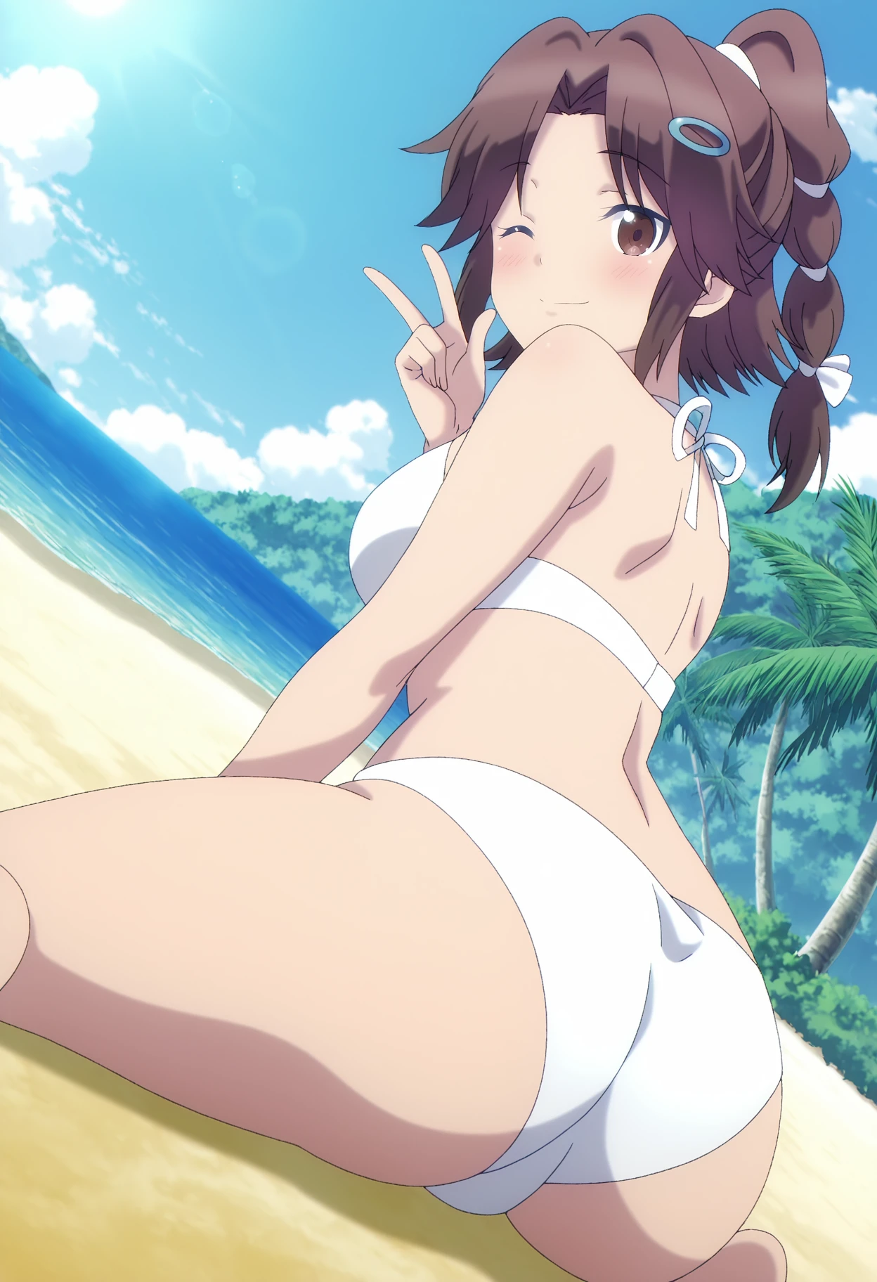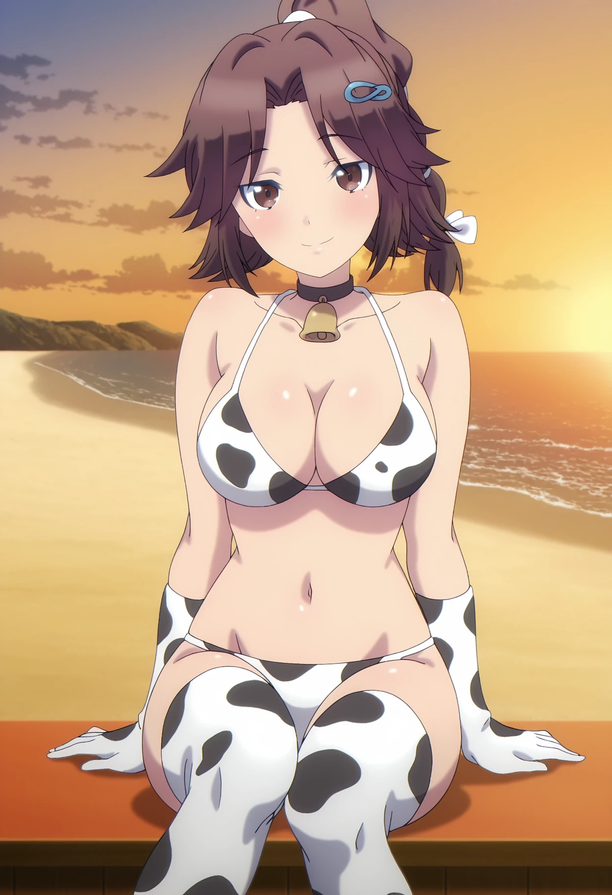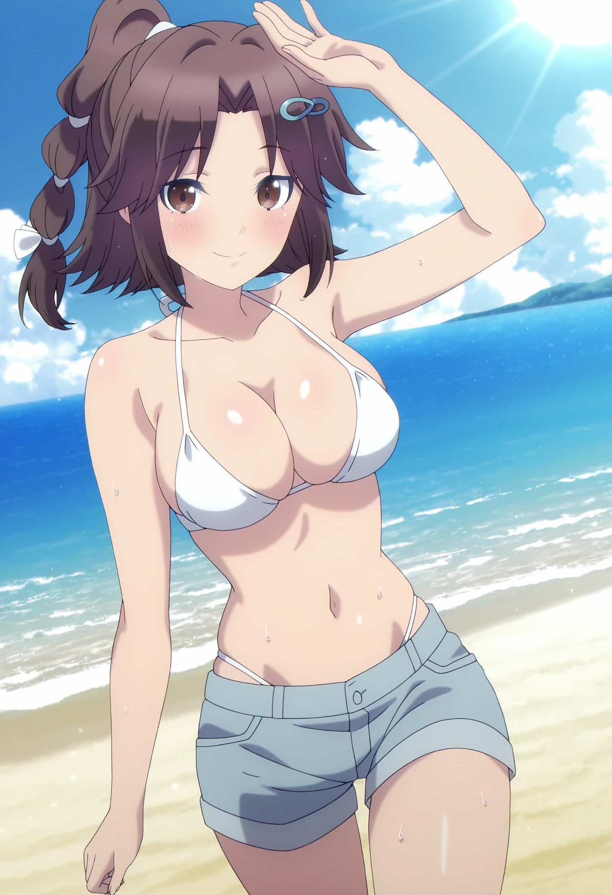 martha (character), casual (outfit), 1girl, brown eyes, brown hair, medium hair, ponytail, white hair bow