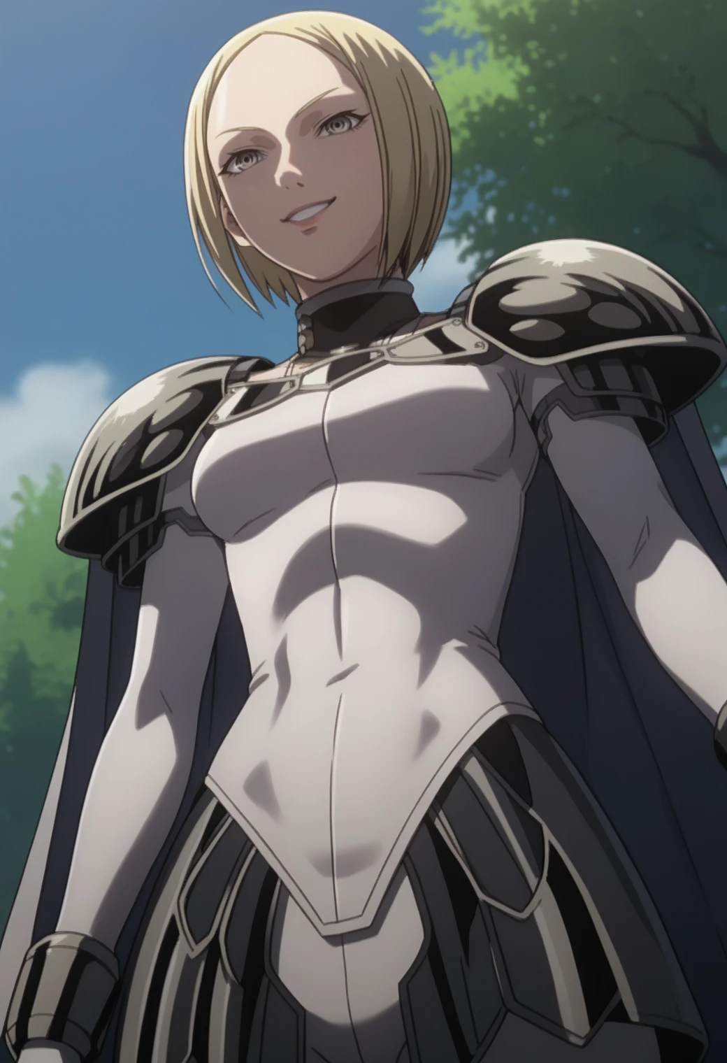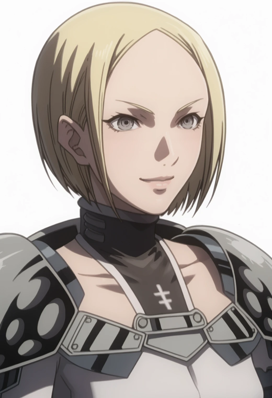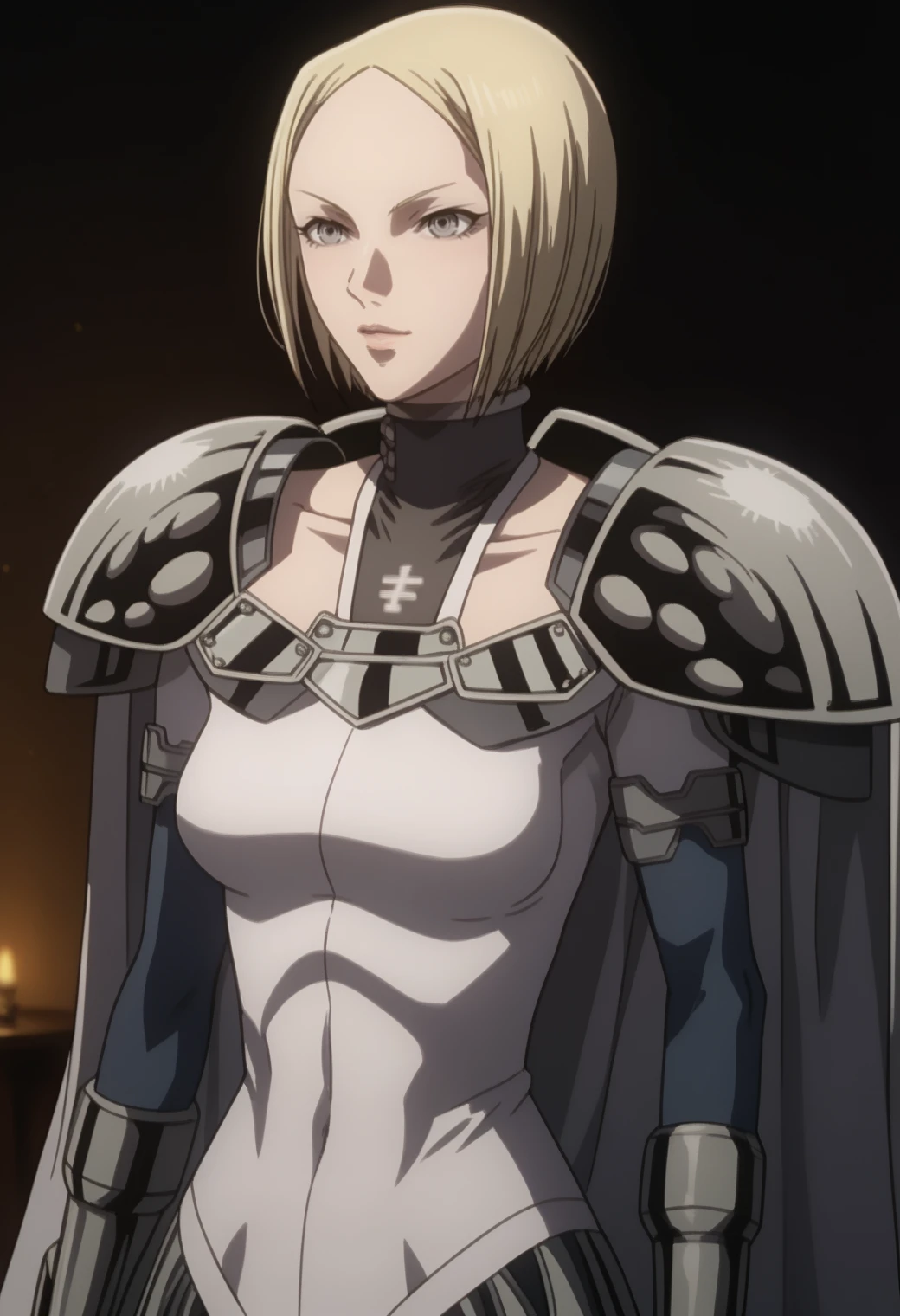 helen, pauldrons, bodysuit, cape, bob cut, gray eyes