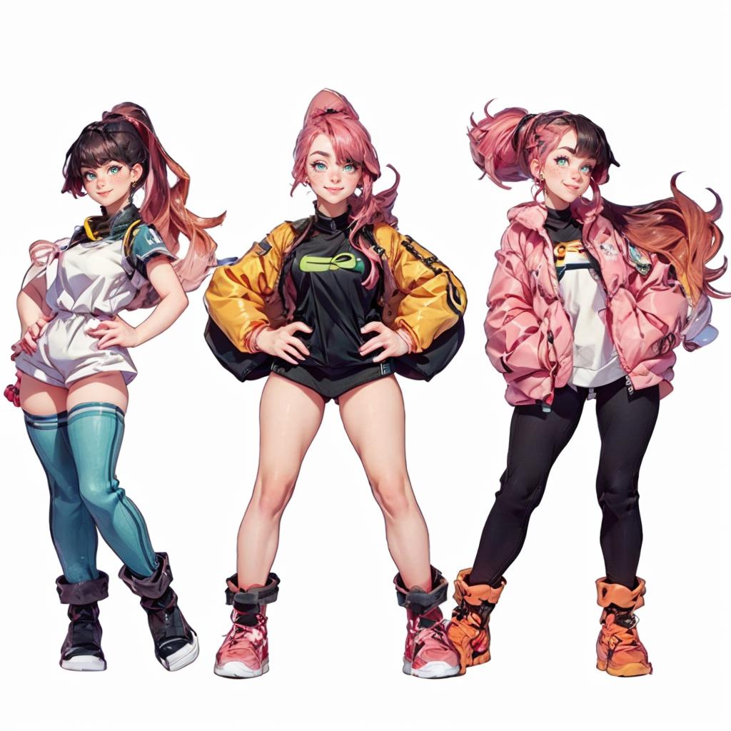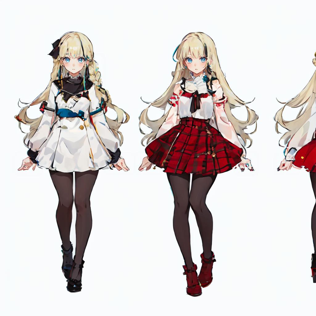 Use the following prompt to generate the layout correctly: "1girl, (MoreOutfits:1.5), (clothes variation, multiple views:1), (3views), full body, (skirt, shirt), curvy, looking at viewer, smile, :D, cute pose, (dynamic_pose:1.2), wide shot, (white background:1), (masterpiece:1.2), (best quality, highest quality), (ultra detailed), (8k, 4k, intricate), detailed eyes."