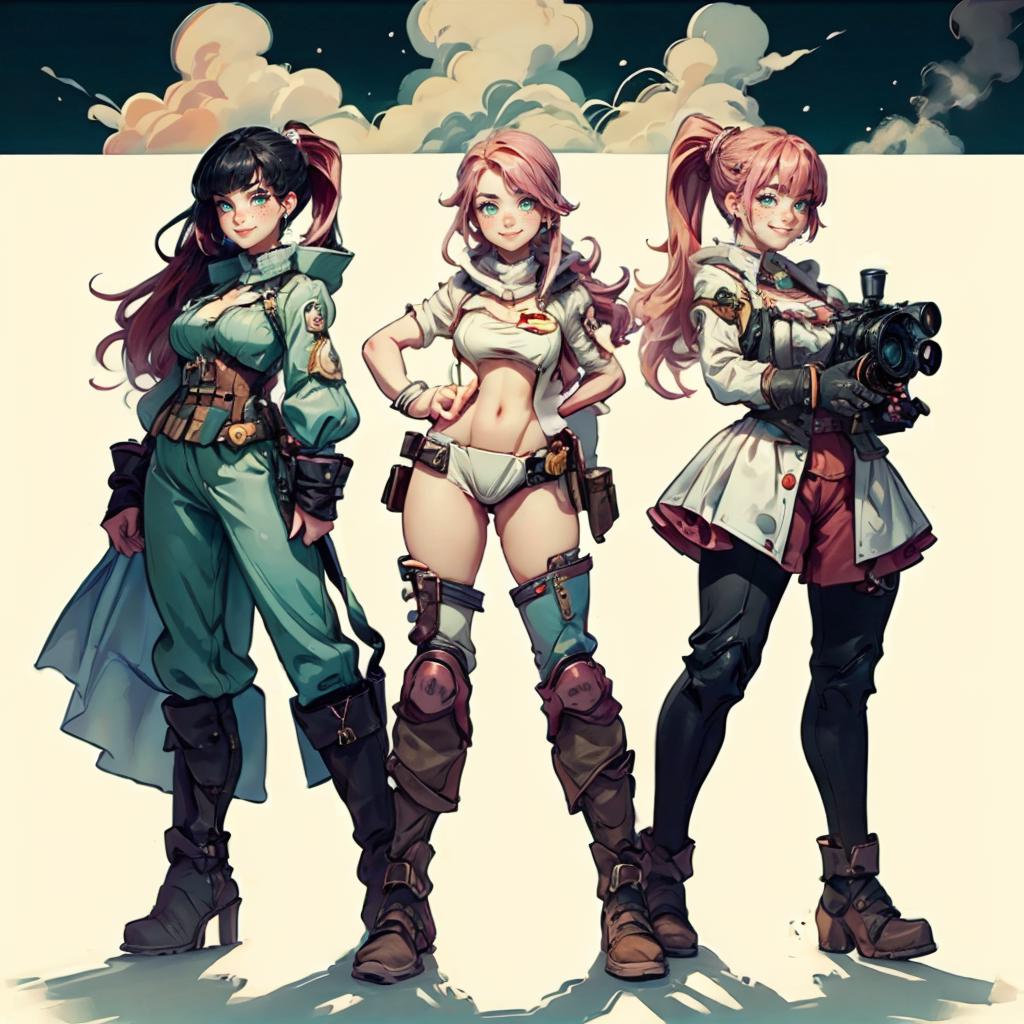 REMEMBER to follow the social networks and ask for your own model. Hello everyone. I bring you something I've been working on this week, and I believe you will like it. It's a character costume designer. Sometimes, we have a character, but we wonder how they would look in different outfits. With this model, you can easily and quickly answer that question. Use the model with a strength of <1.0 - 0.8> to get better results. Use the activation word "(MoreOutfits:1.5)" for greater precision. Now, I'll explain how to get the best results based on my experience. So here's a small GUIDE: