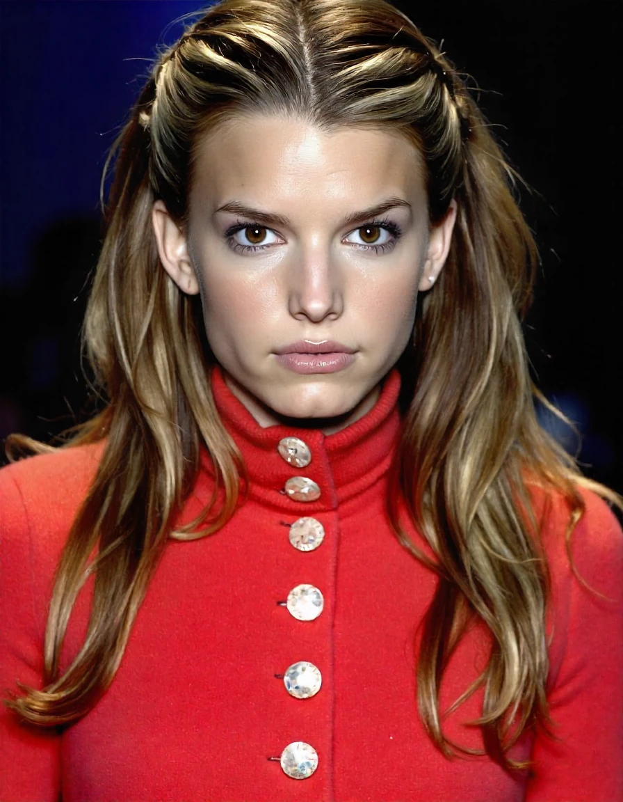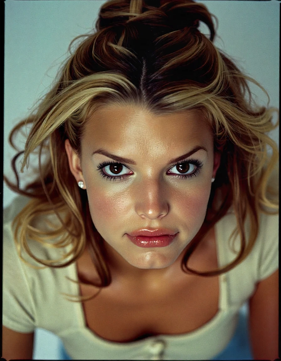 Around the year 2000, Jessica Simpson rose to fame as a pop singer and television personality. Her debut studio album, Sweet Kisses (1999), featured the hit single “I Wanna Love You Forever,” which became a top 5 hit on the Billboard Hot 100 and helped establish her as a major figure in the teen pop scene alongside contemporaries like Britney Spears and Christina Aguilera.