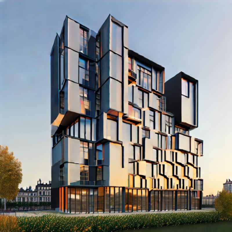 "a photo of a futuristic house with a organic facade, roots, waves, many windows, by midjourneyi"