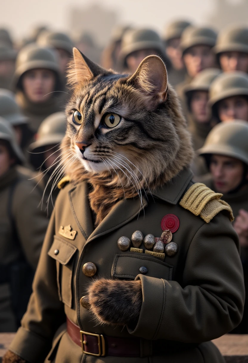 "fluffy, medium-sized cat named Allie with a mottled coat featuring dark brown and black tabby stripes" (more accurate)