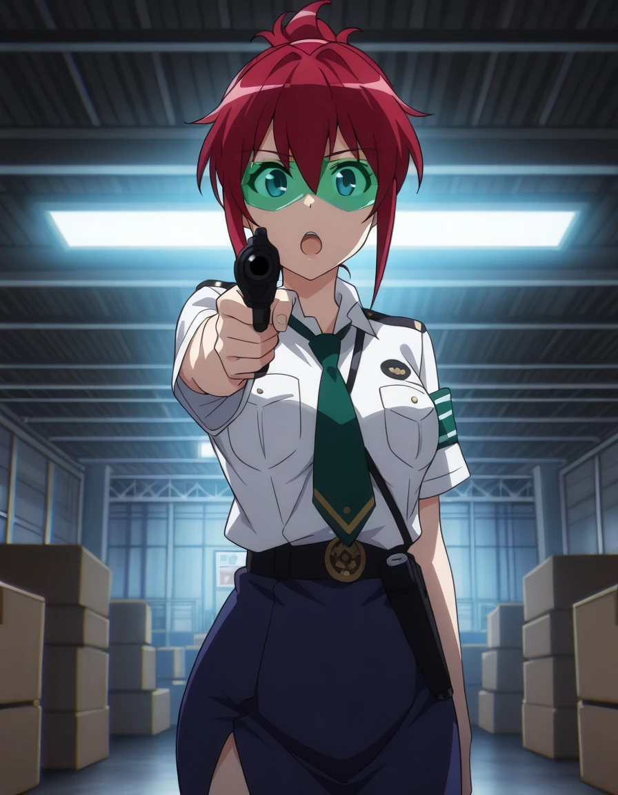 sakuraiaoi, dress shirt, blue skirt, green neckwear