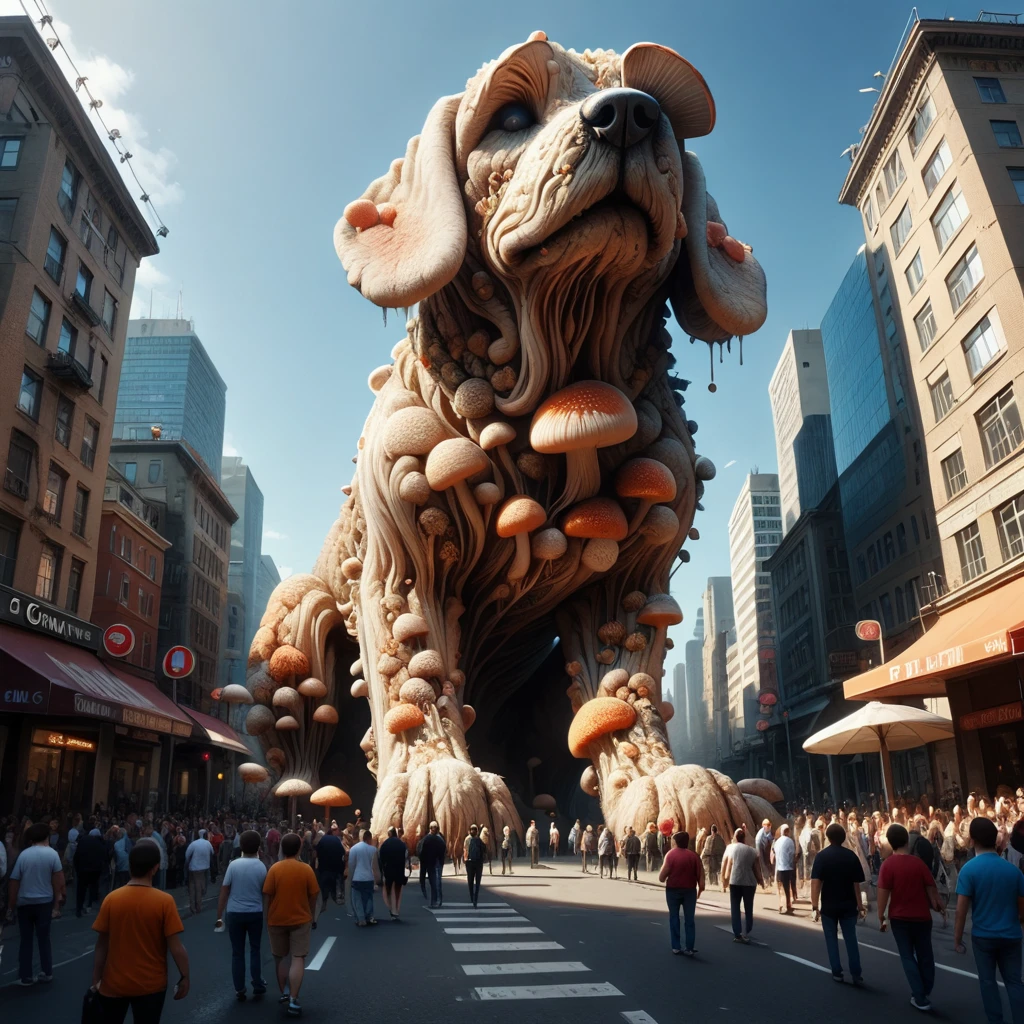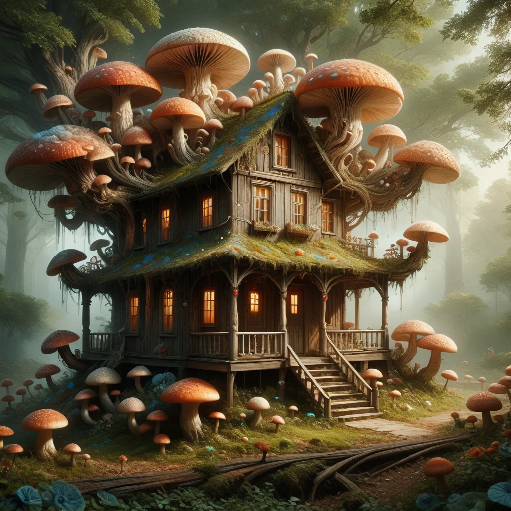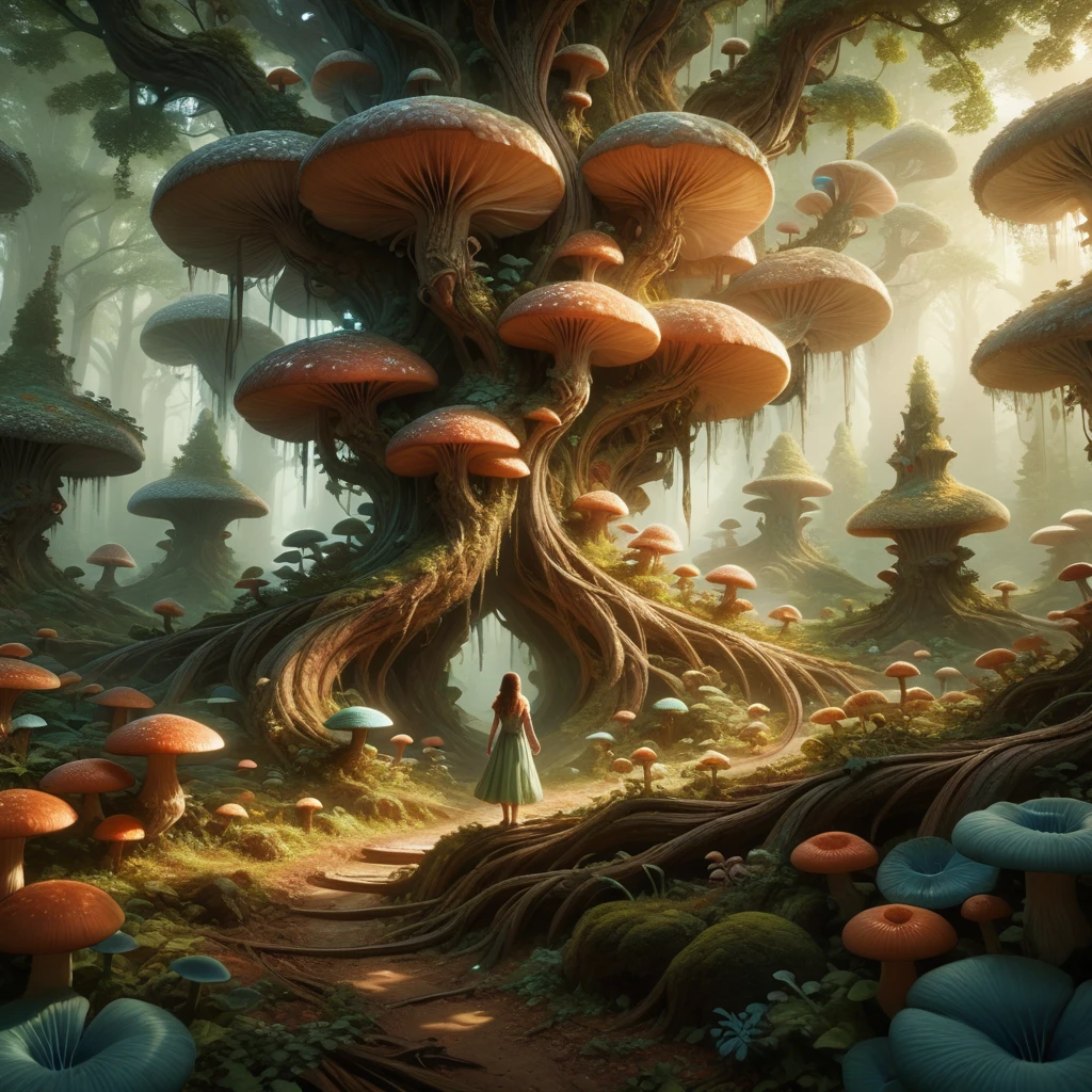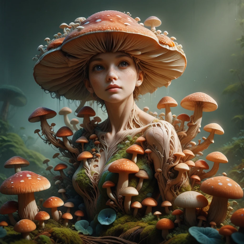 use fungal_world as the activation tag. Reduce weight if you can't get humans to generate in your image.