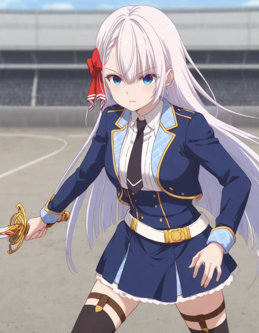 <lora:riselia_ray_crystalia-seiken_gakuin_s1-v3-ixl-anime-soralz:1>, riselia ray crystalia (seiken gakuin), long hair, straight hair, white hair, hair between eyes, side braid, earringsOutfit - School Uniform