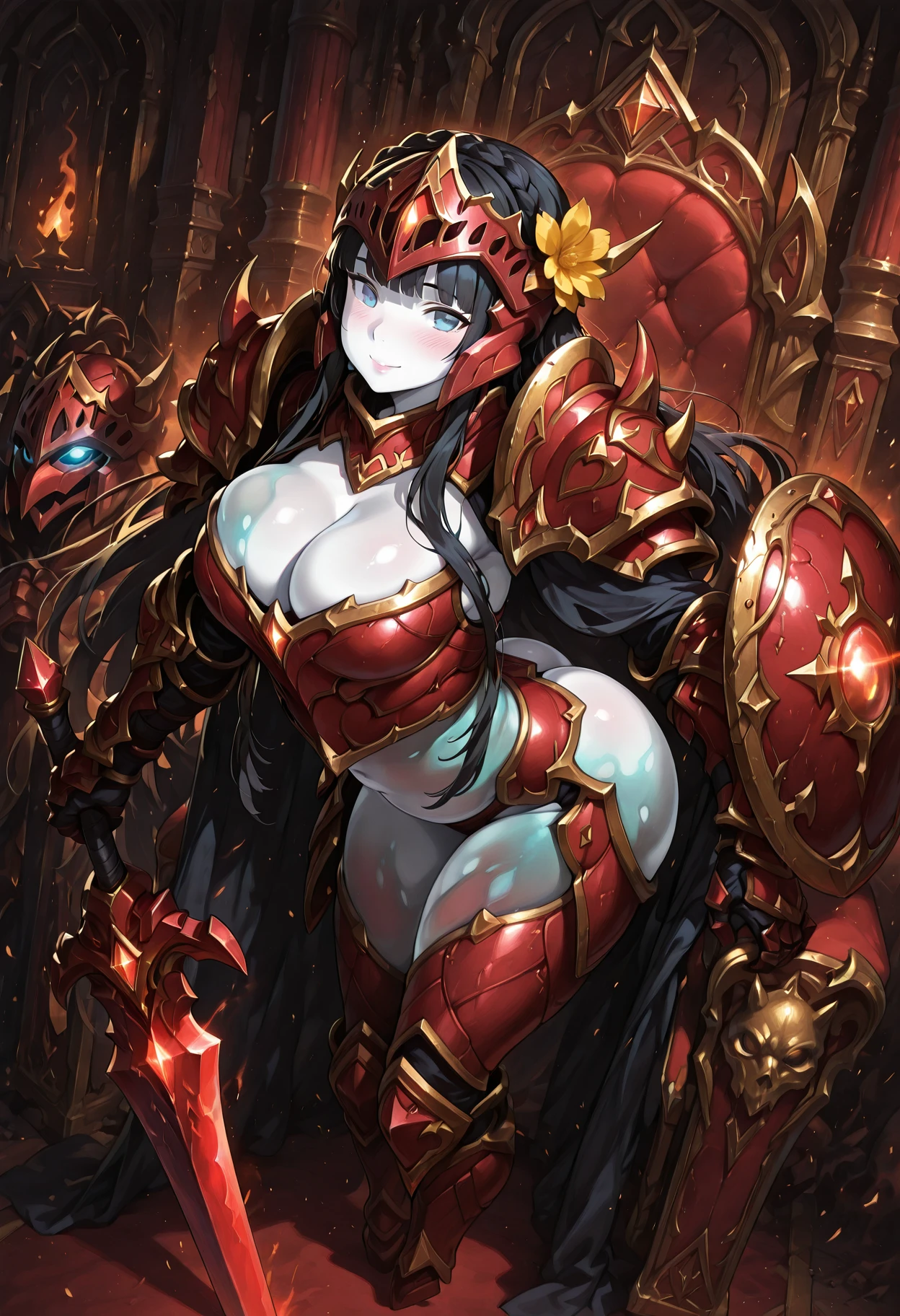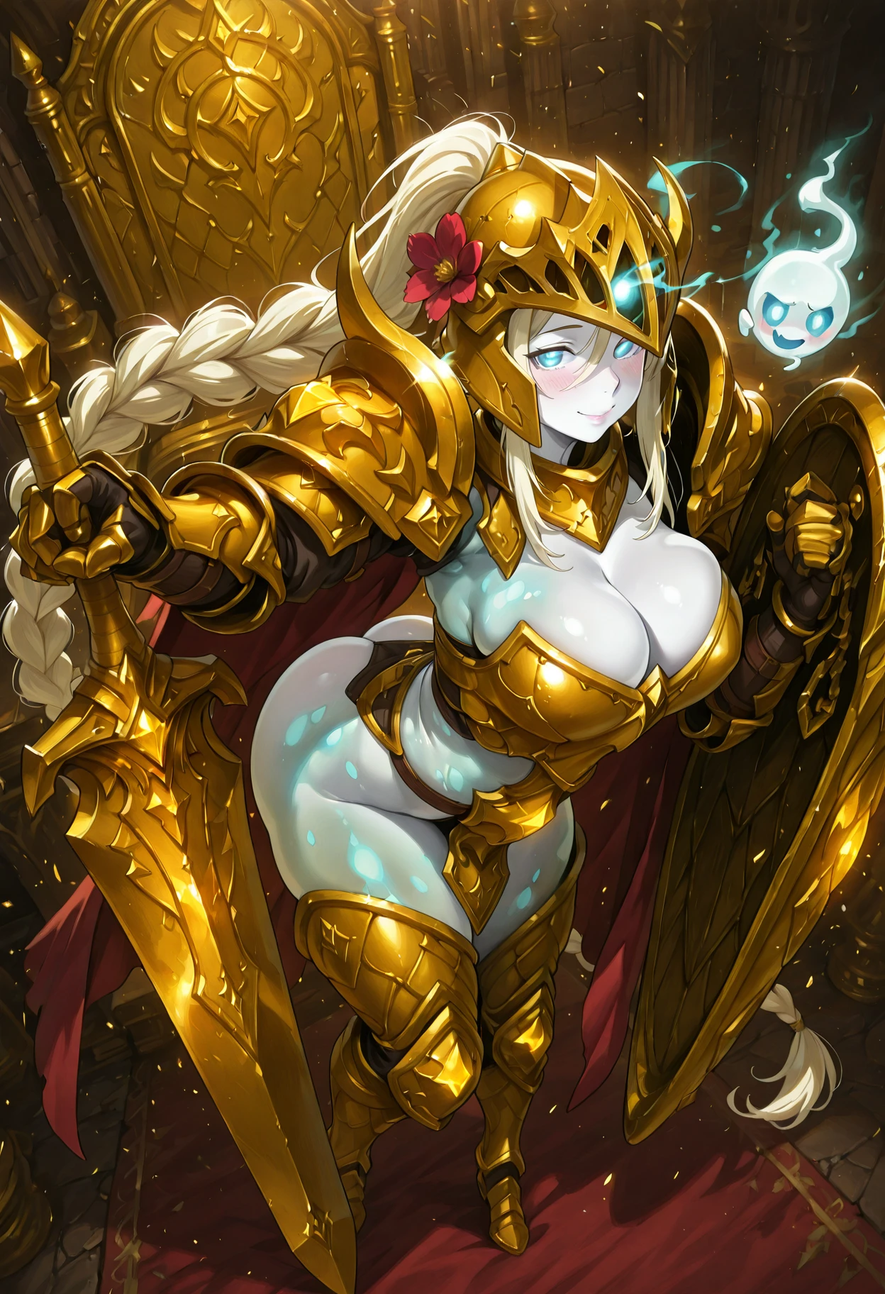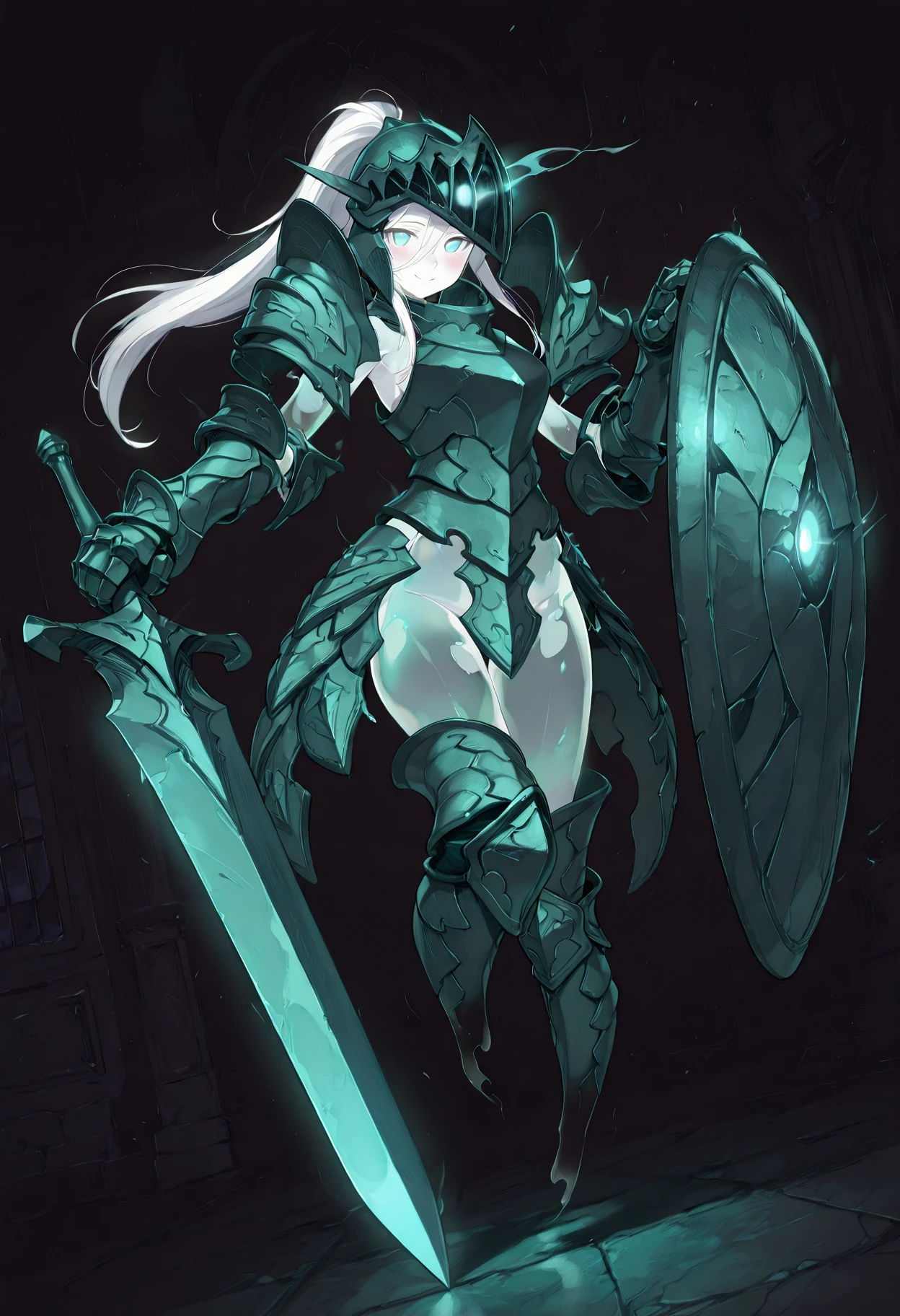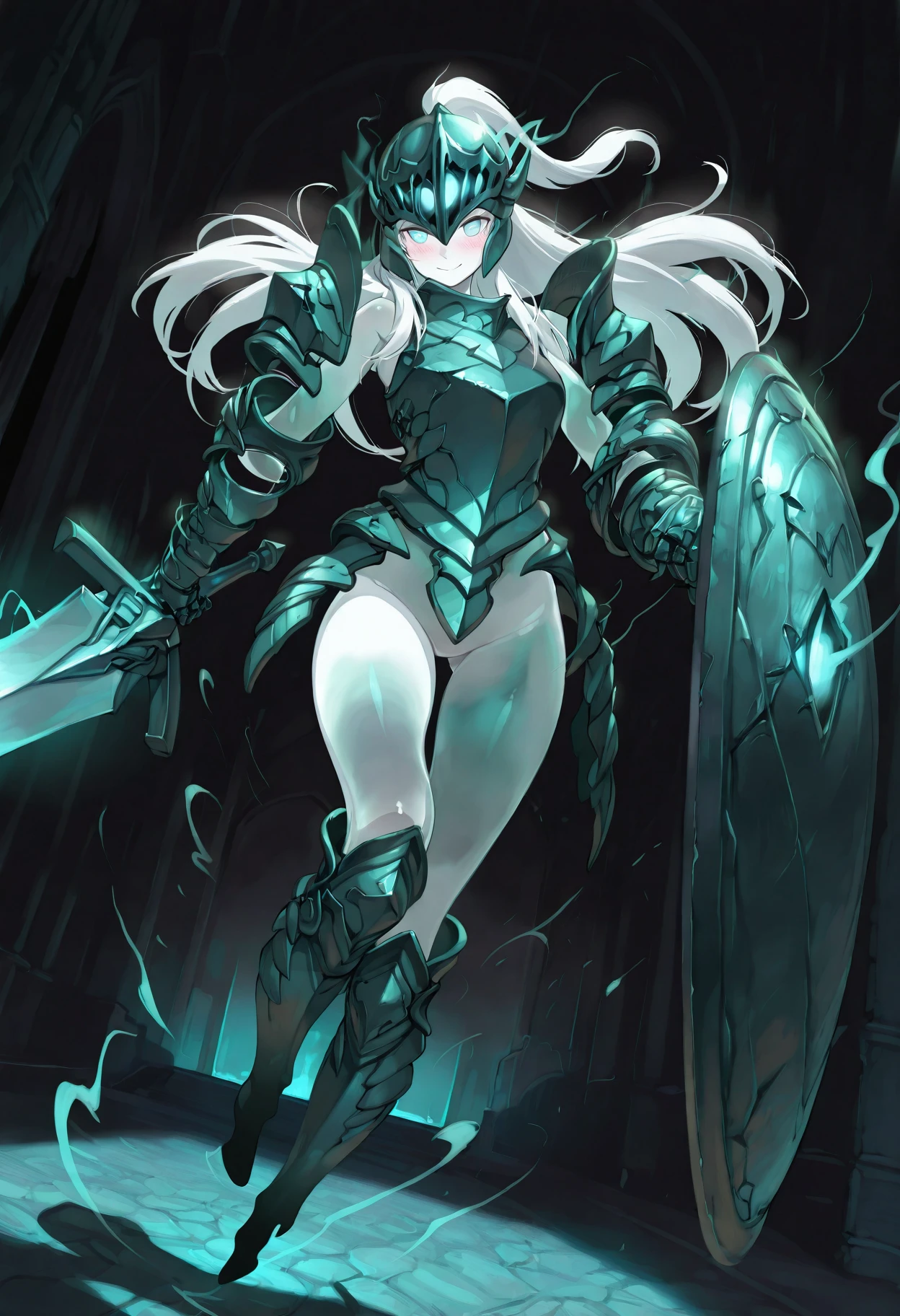 livingarmormge, living armor, ghost, spirit, see-through body, floating, midair, no feet, glowing eyes, colored skin👤 Character Appearance: