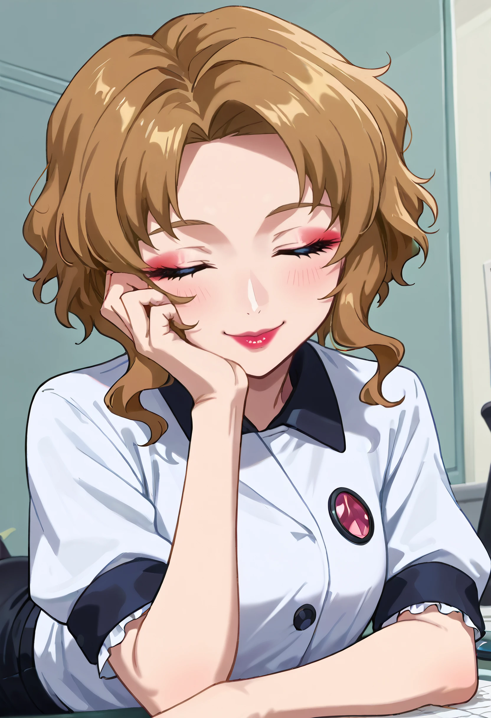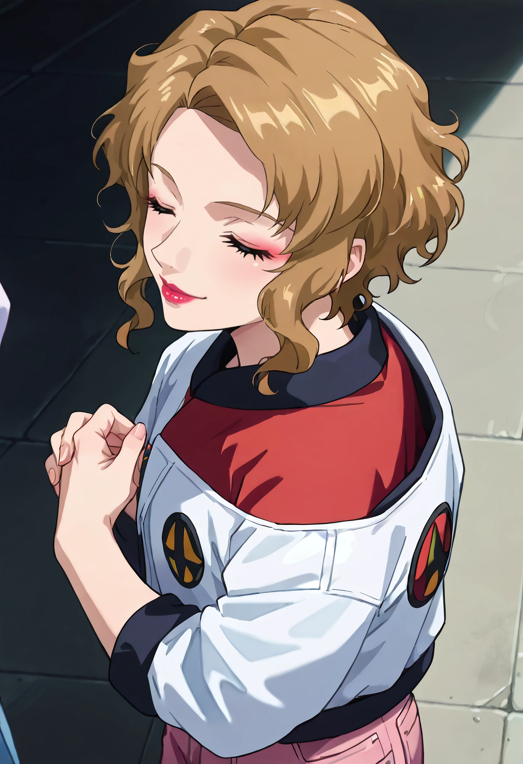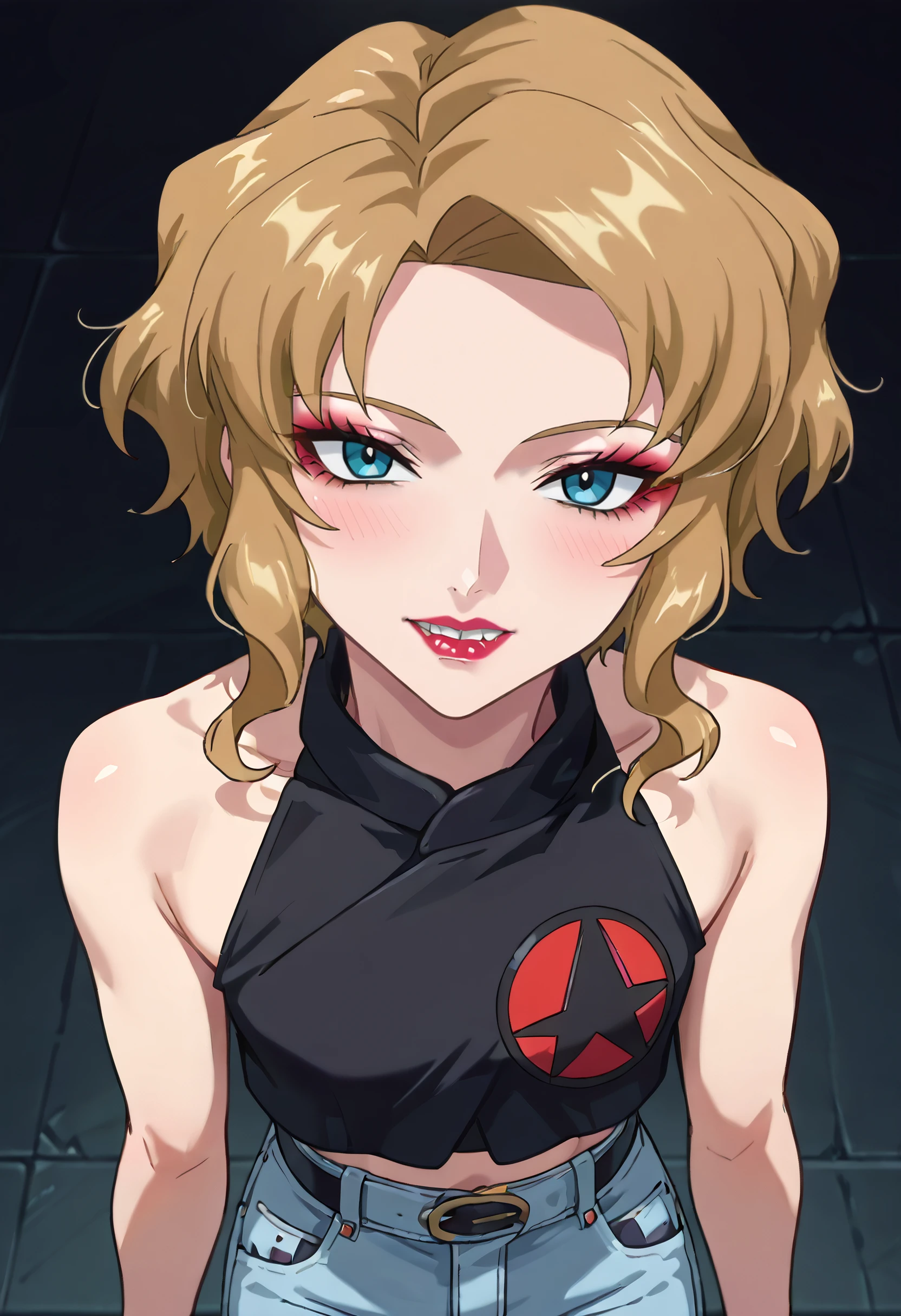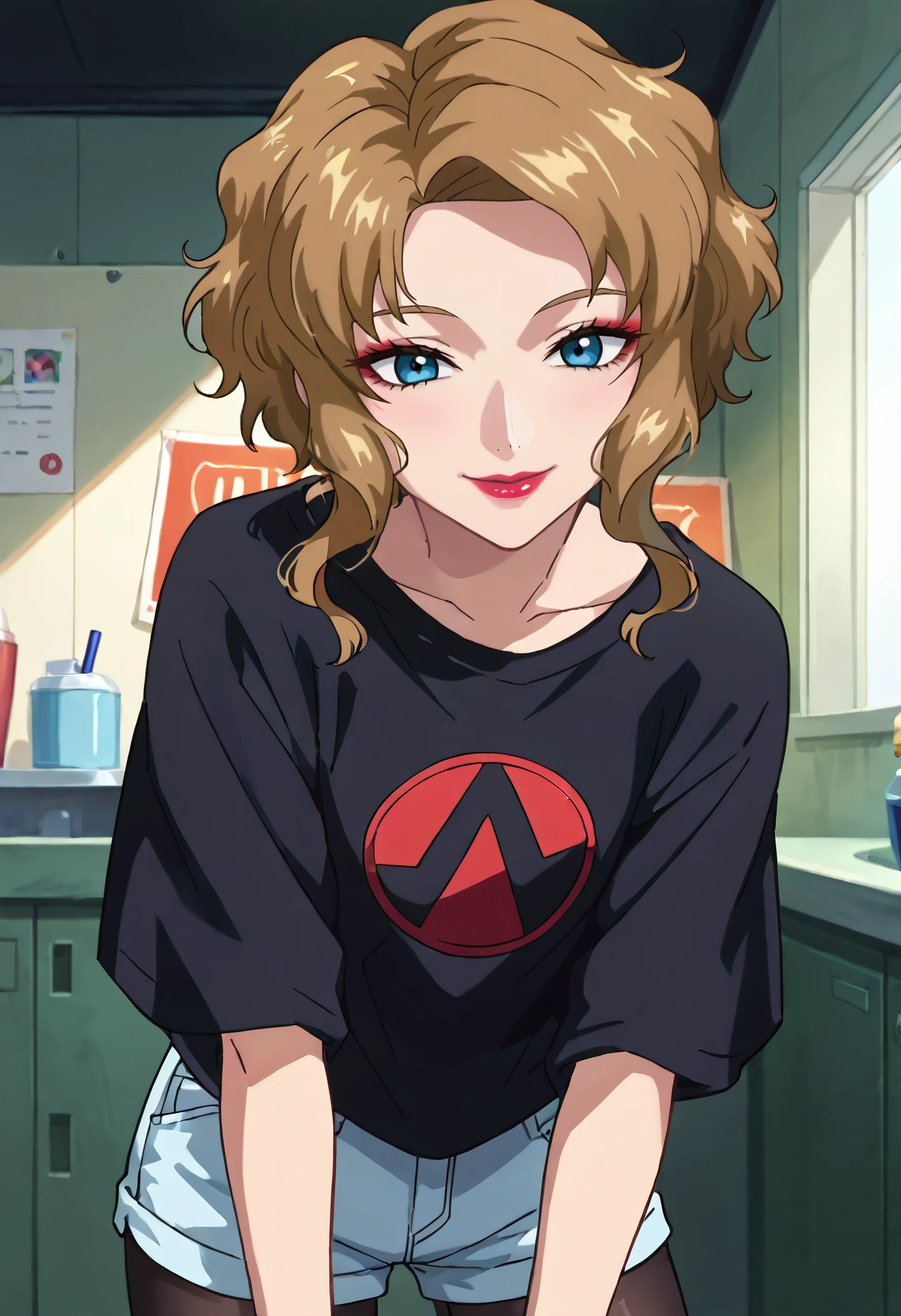 GSDErica, blonde hair, short hair, sidelocks, blue eyes, lipstick, makeup, wavy hair, parted bangs,