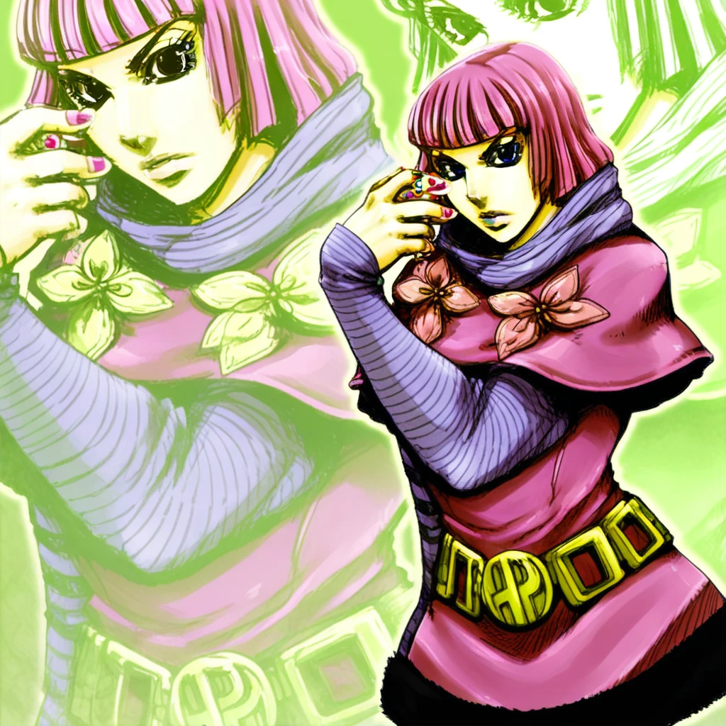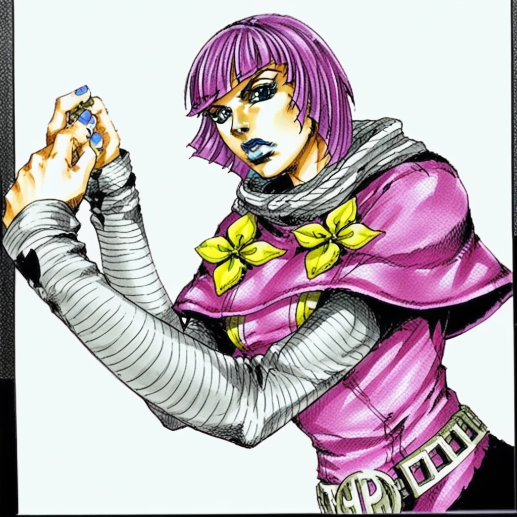 Try using: capelet, pink eyes, lipstick, purple lips, short hair, boots, dress, belt