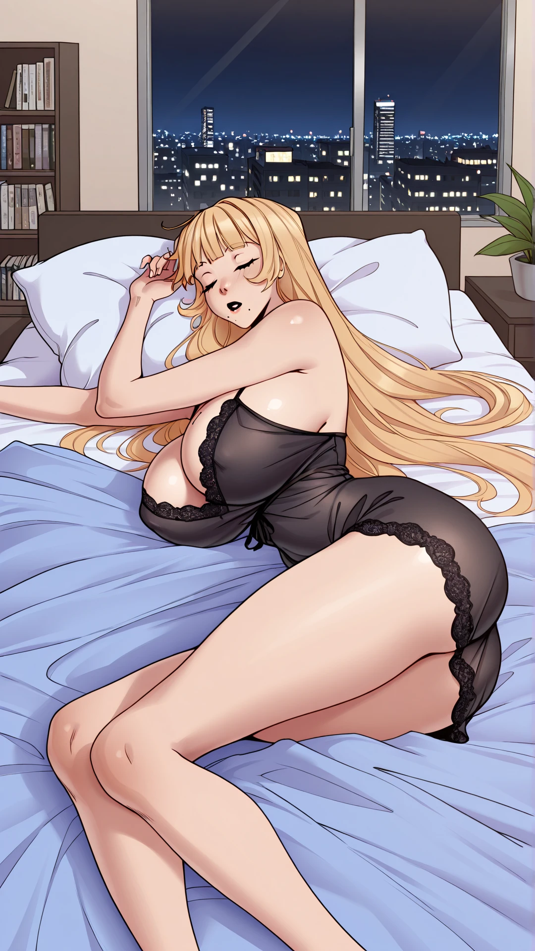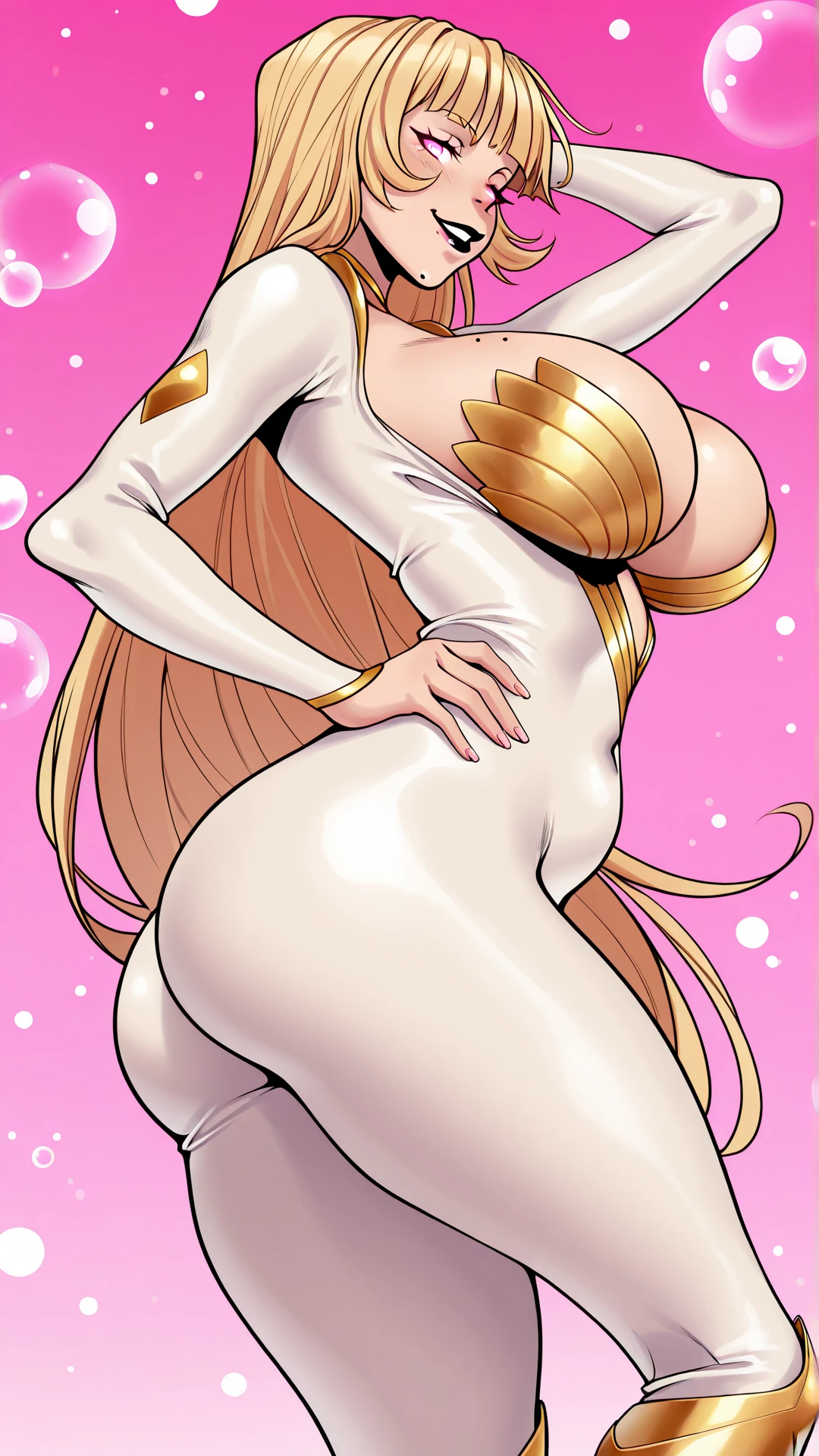 V3NUS, Very Long Blonde Hair, makeup, Mole Under Mouth, Mole on , Huge Breasts, Wide Hips, Narrow Waist, Long Legs, Bubble Butt,