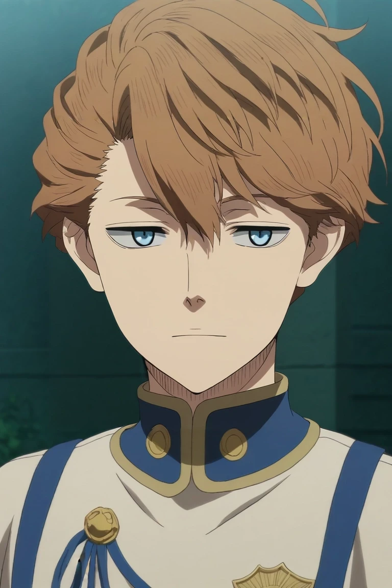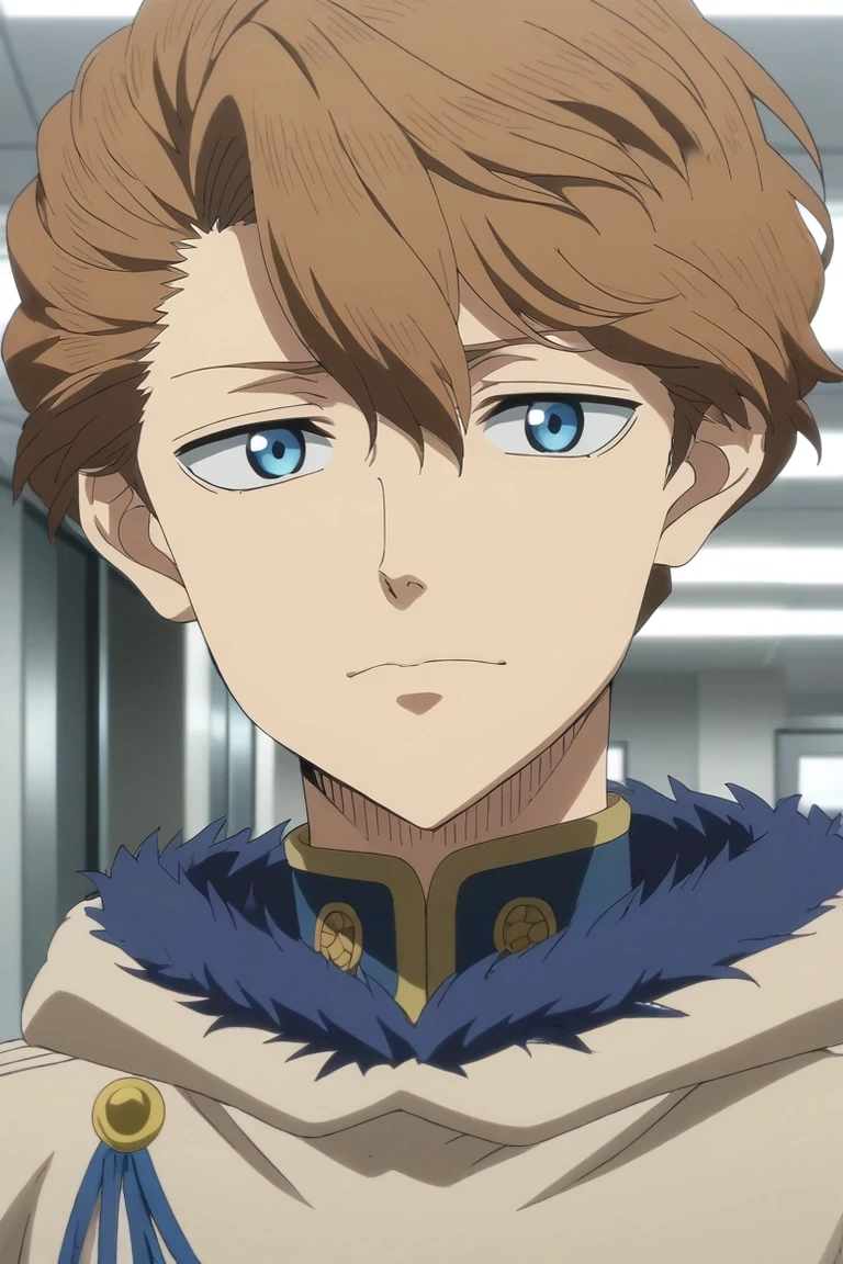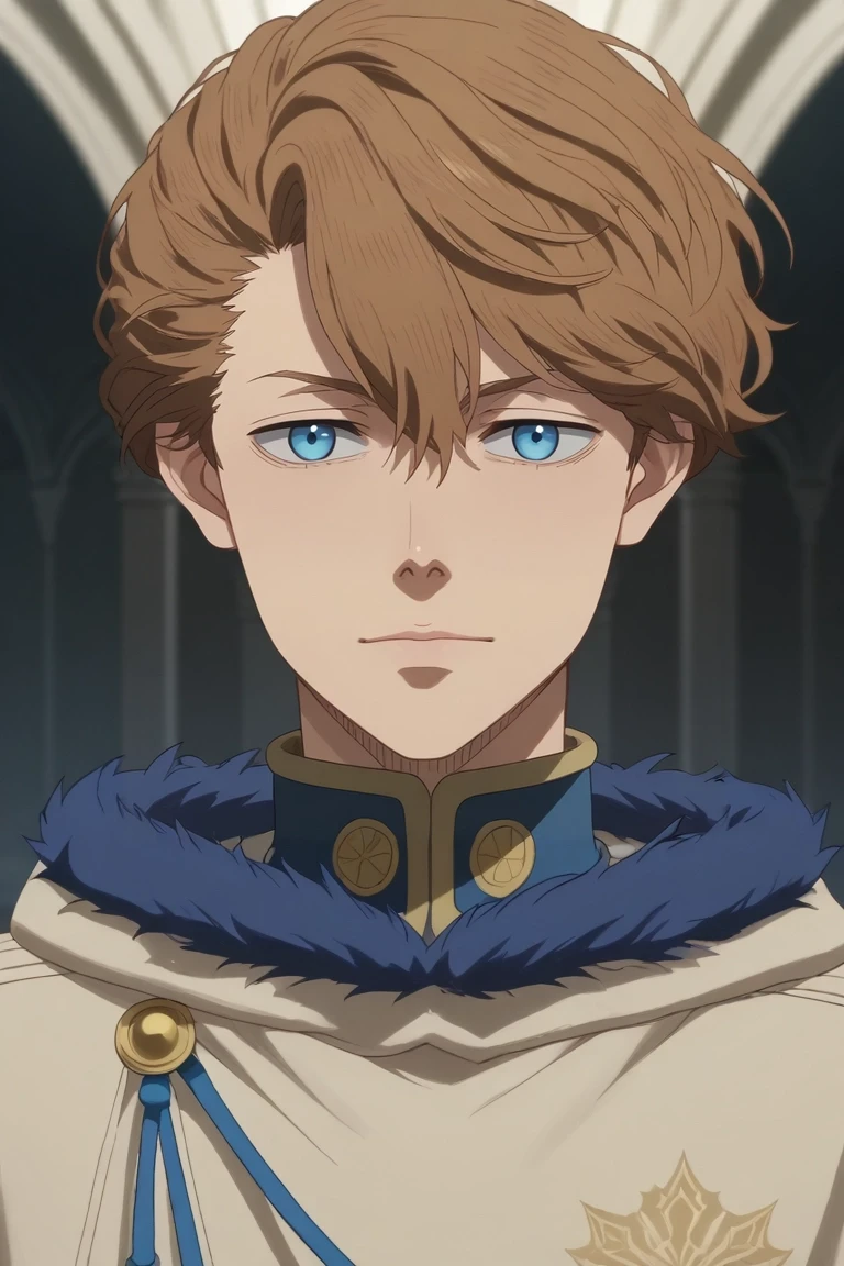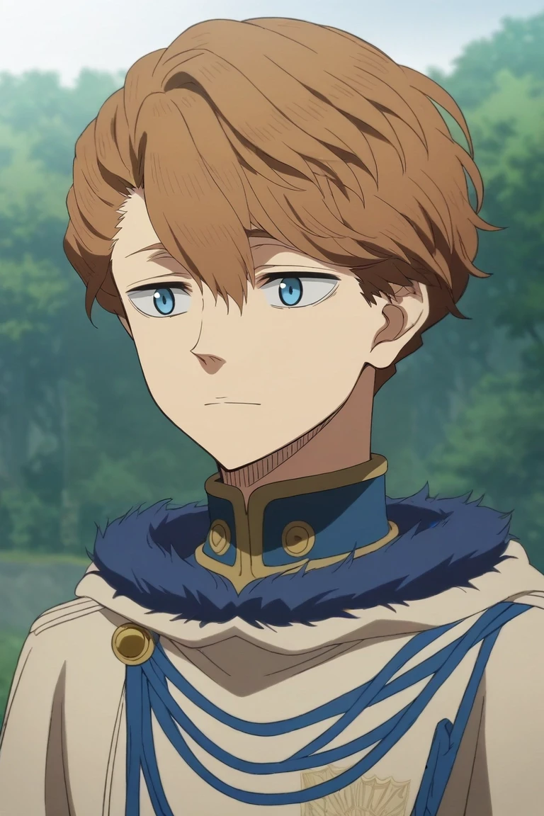 langris_vaude, brown hair, blue eyes, short hair, hair between eyes