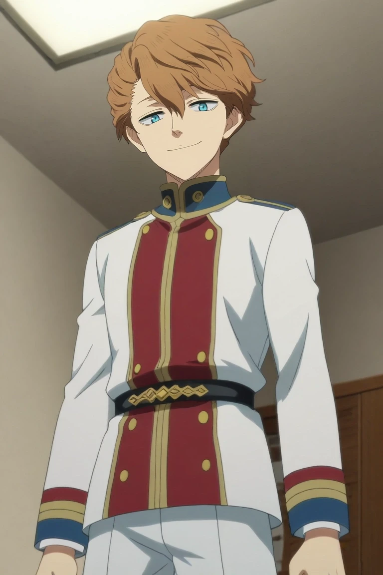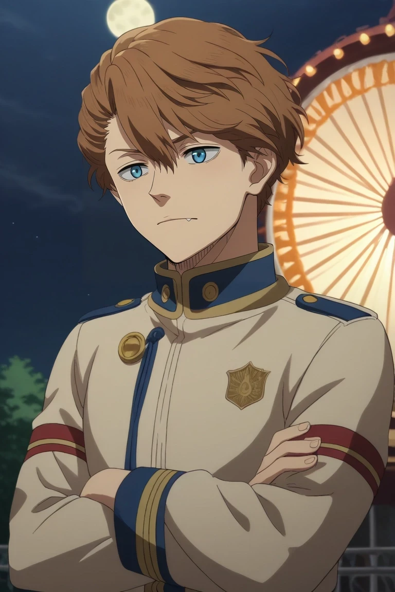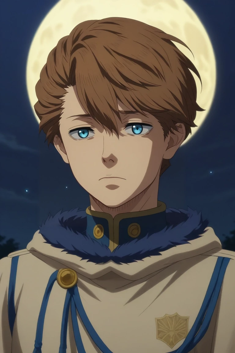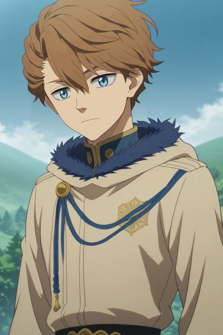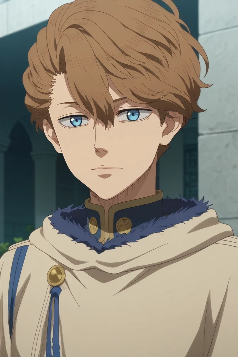 langris_vaude, brown hair, blue eyes, short hair, hair between eyes