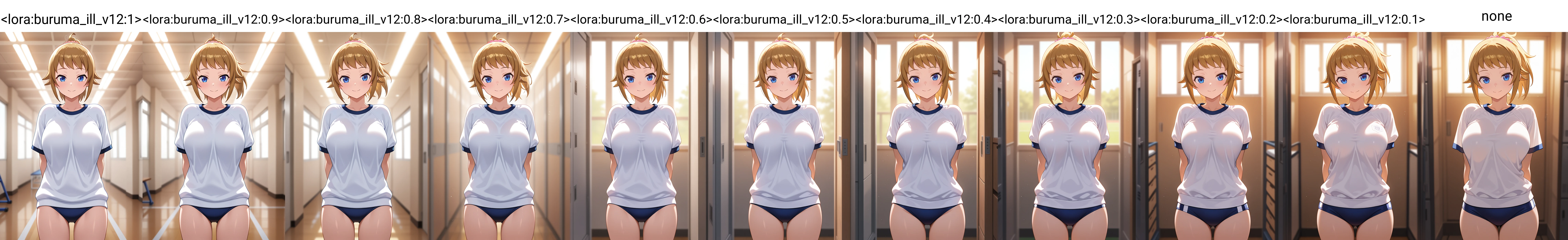 このLoRAは、シャツを外に出して着用し、ブルマが部分的に見えている体操服スタイルを再現するためのものです。