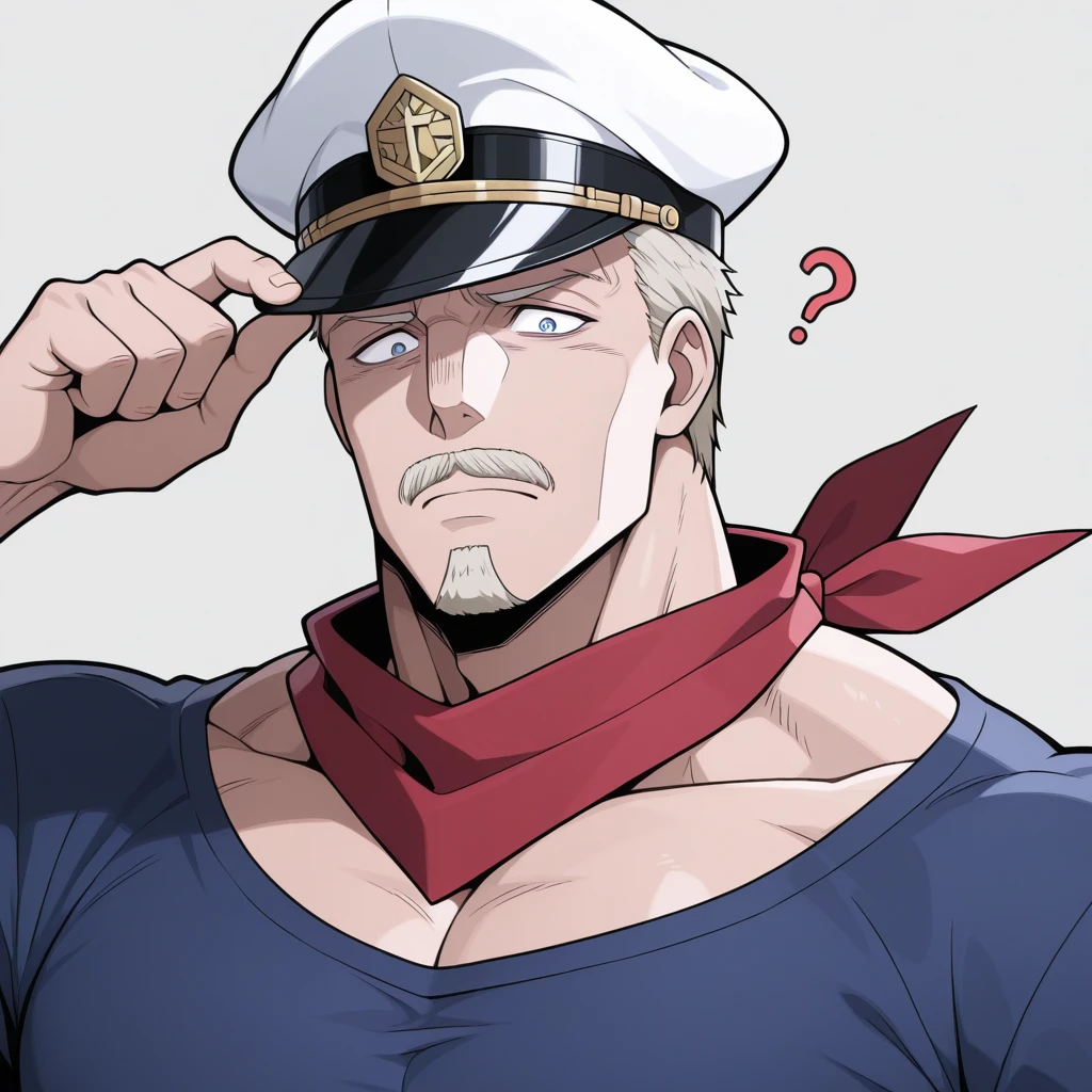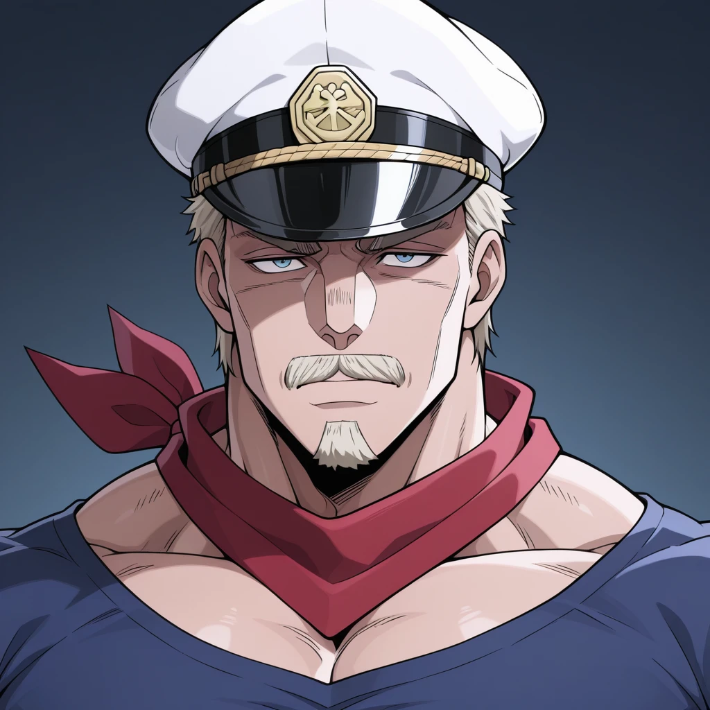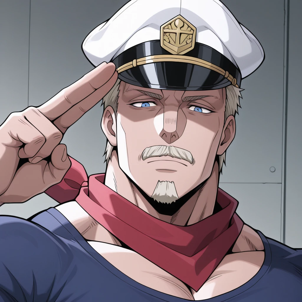 Default appearance: red neckerchief, blue shirt, white peaked cap, captain's hat, arm guards, white gloves, white pants, belt