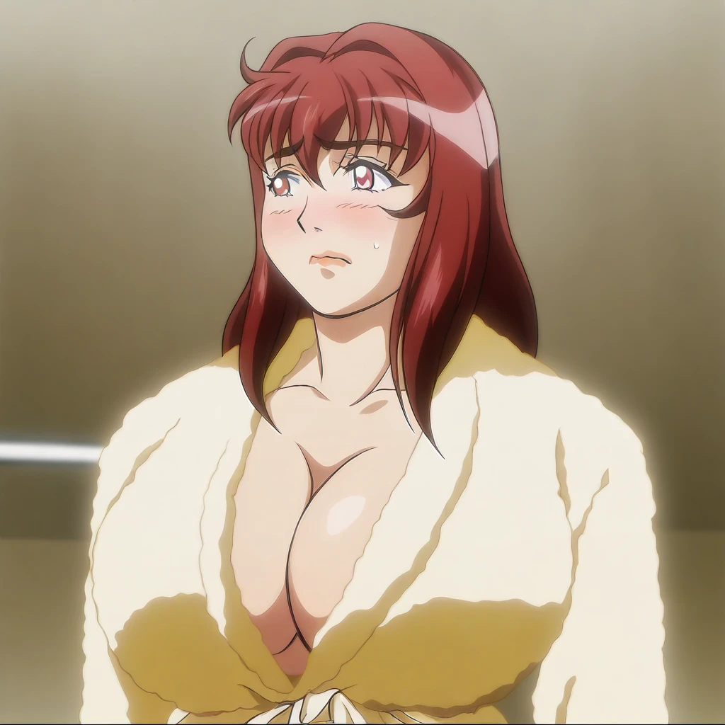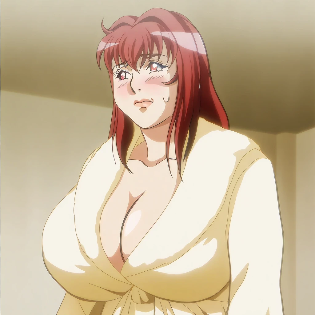 yellow bathrobe, fuzzy bathrobe, yellow housecoat,
