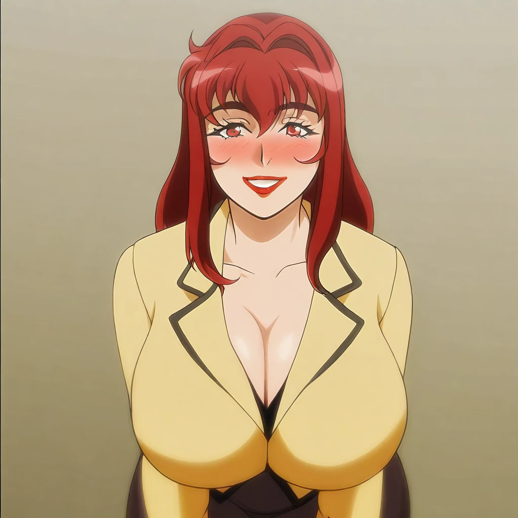 pencil skirt, blouse, yellow blazer, tights, teacher