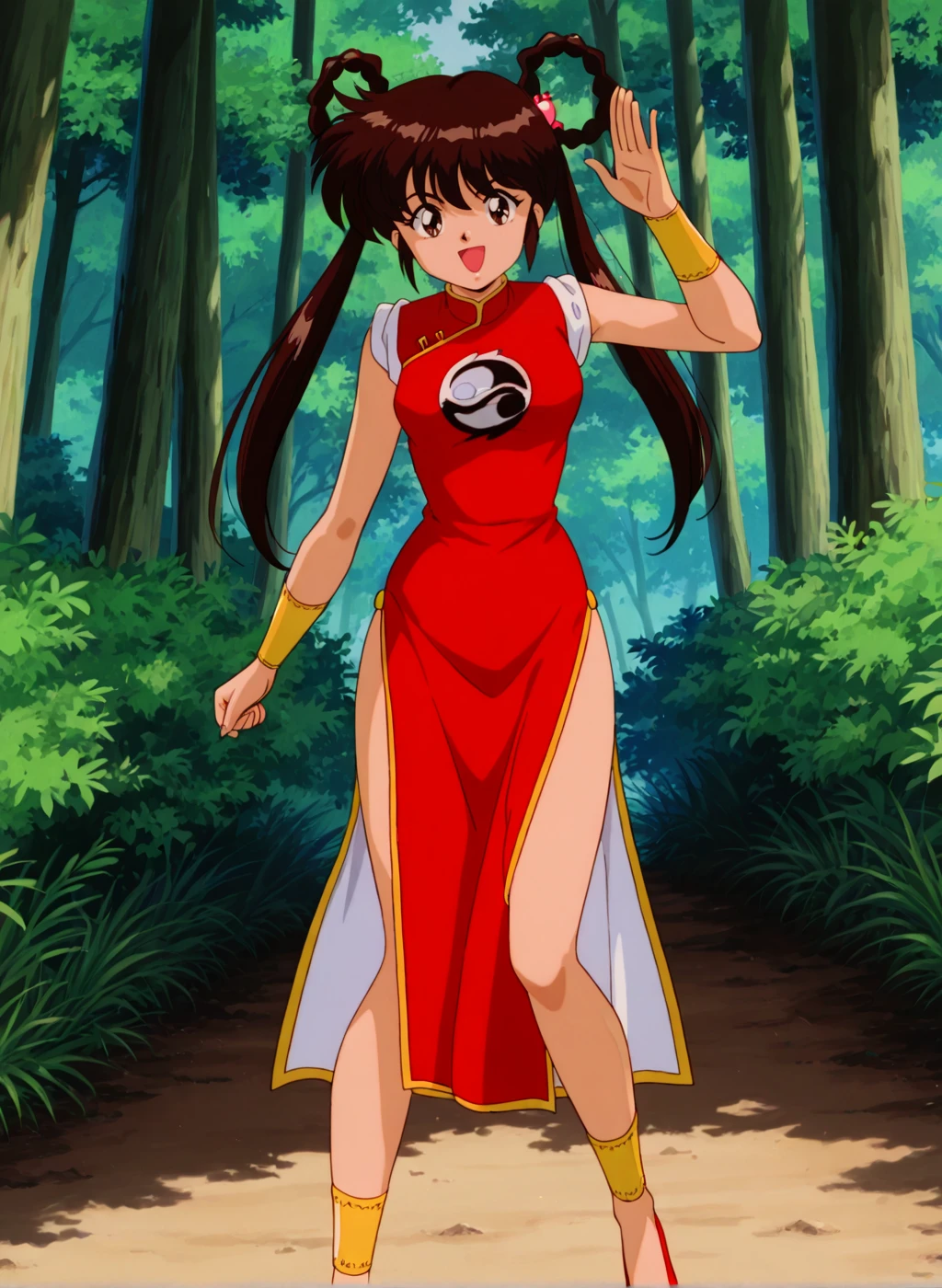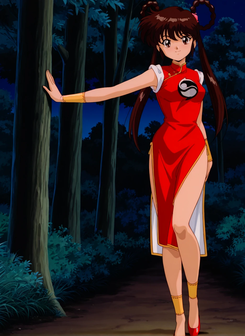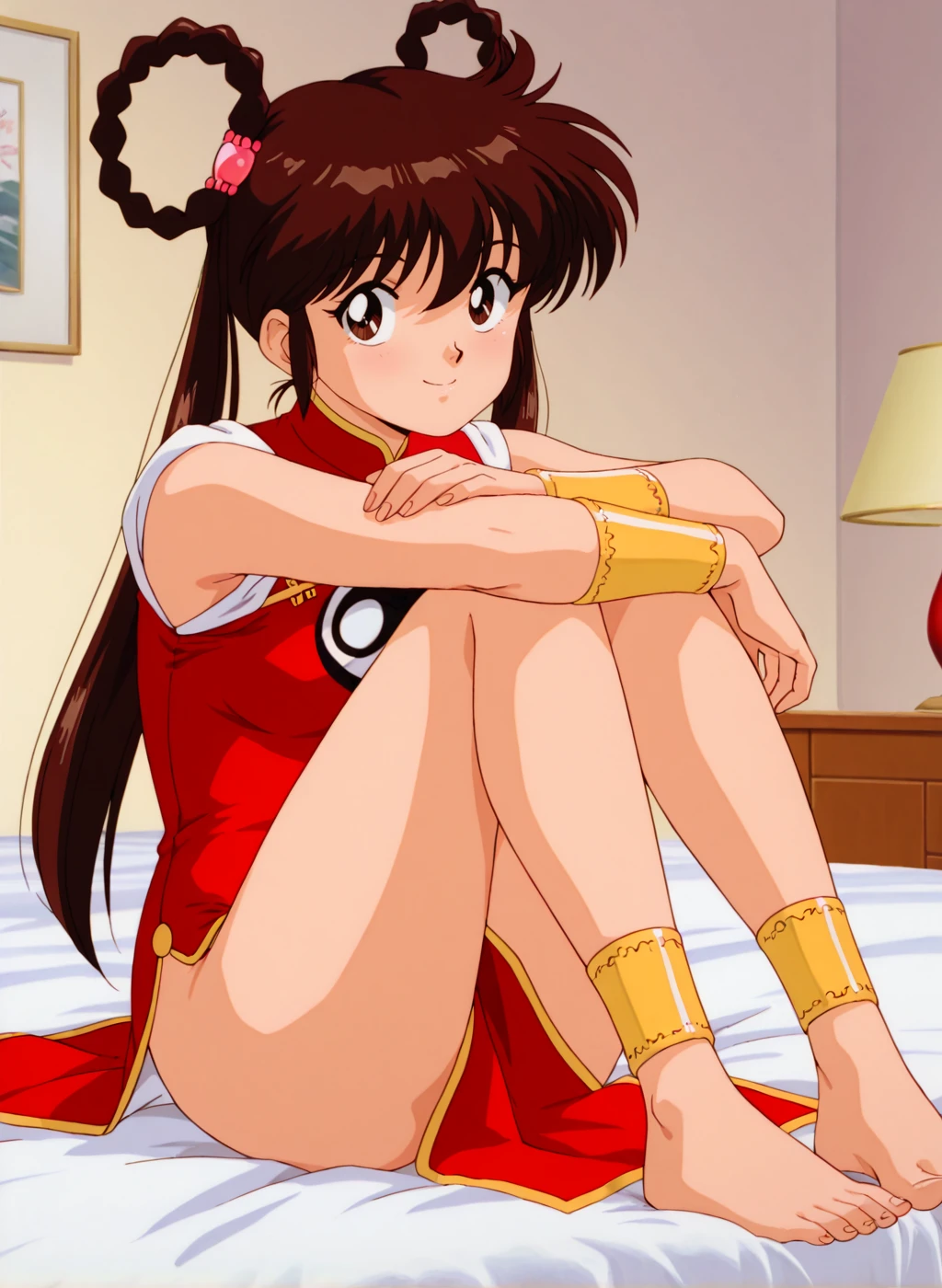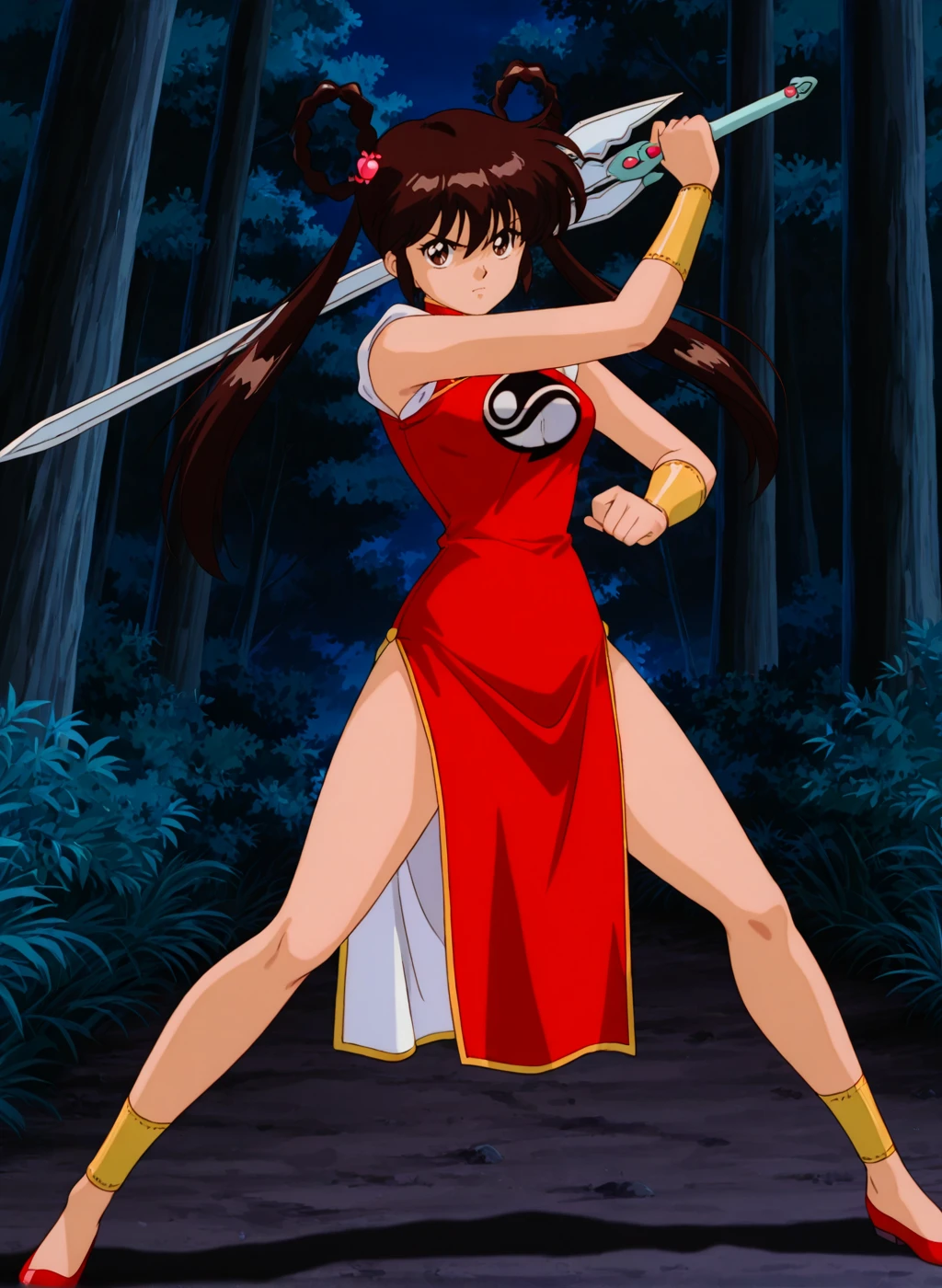 china dress, red dress, sleeveless dress,hair ornament,bracer, anklet, red footwear,pelvic curtain