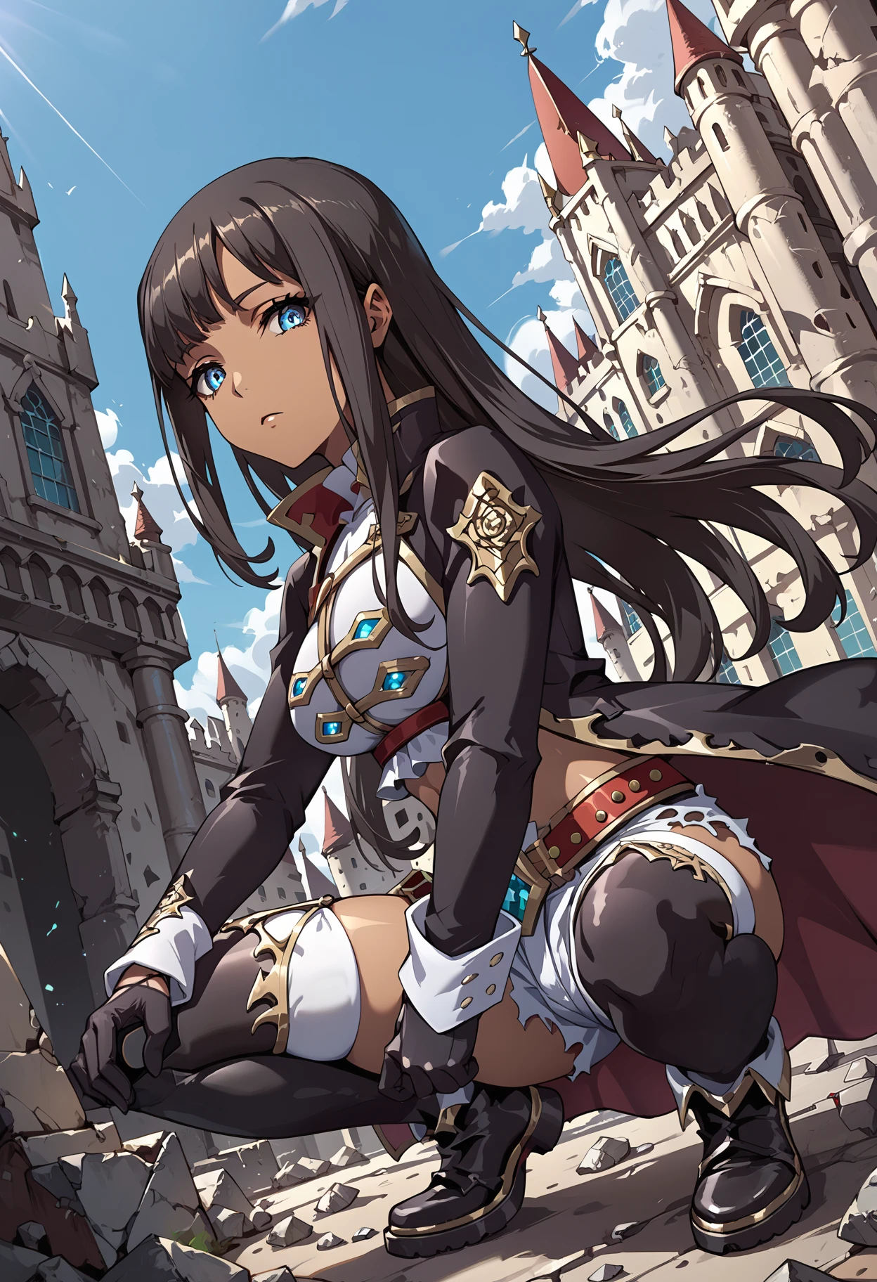 衣装補助ワード・black_thighhighs,gloves,boots,short shorts,midriff,coat,