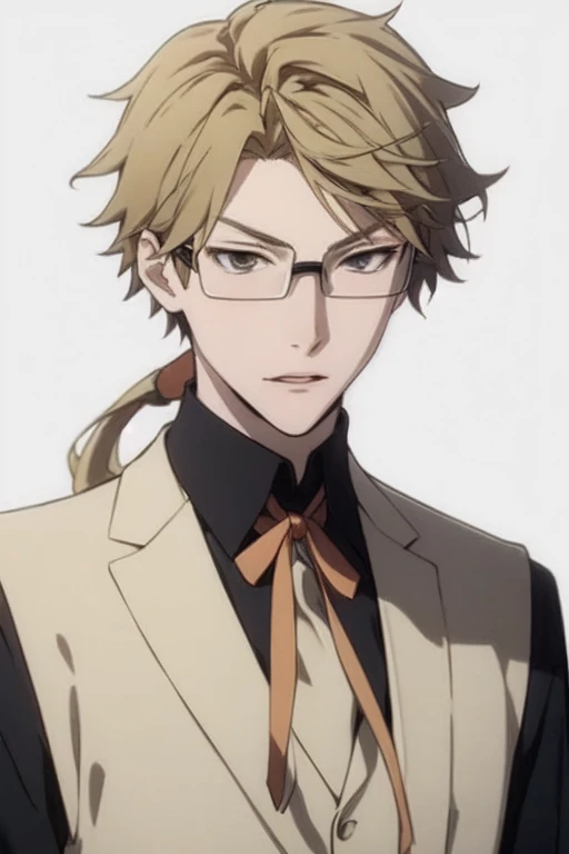 Kunikida,1boy, Blonde Hair, Ponytail, Glasses, Red Ribbon,Blue Eyes