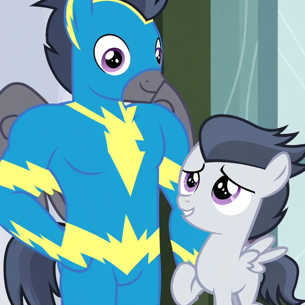 <lora:MLP:FIM - Rumble :1>, rumble, male pony, pegasus, colt, grey coat, dark mane, purple eyes, small wings,solo