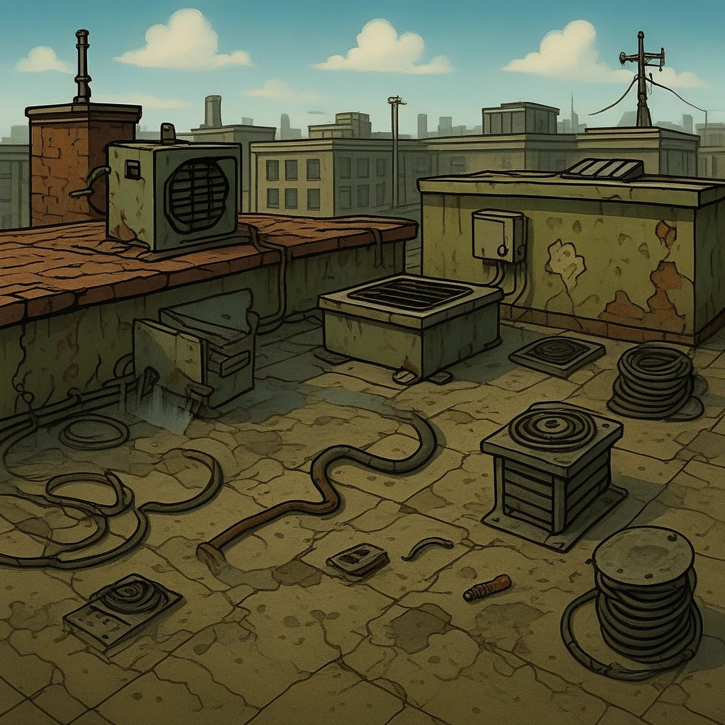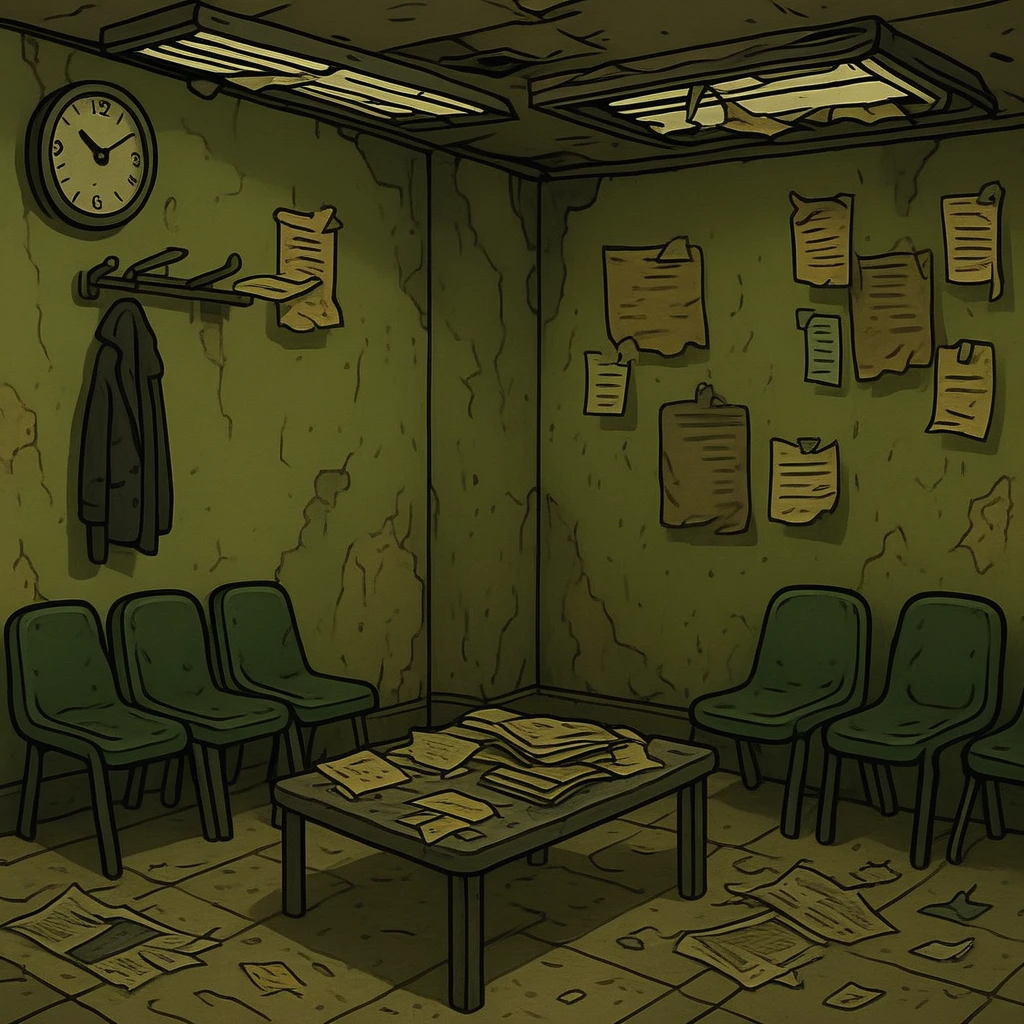 cartoon-style, cel-shaded, thick outlines, black line art, hand-drawn style, soft shading, warm color palette, muted tones, painterly look, 2D game background, point-and-click adventure style, slightly exaggerated perspective, stylized shadows, high contrast lighting, desaturated colors, matte surfaces, hand-painted textures, retro comic style, soft ambient light, clear scene composition, saturated accents, cinematic framing, background art style, thick edge shading, game art aesthetic, no photorealism, classic adventure game colors, story-driven art direction, golden age adventure look, fixed camera angle, vibrant scene layout, consistent lighting direction, stylized geometry, outline-based character design, readable visual structure, ambient storytelling, stylized indoor lighting, game-inspired layout