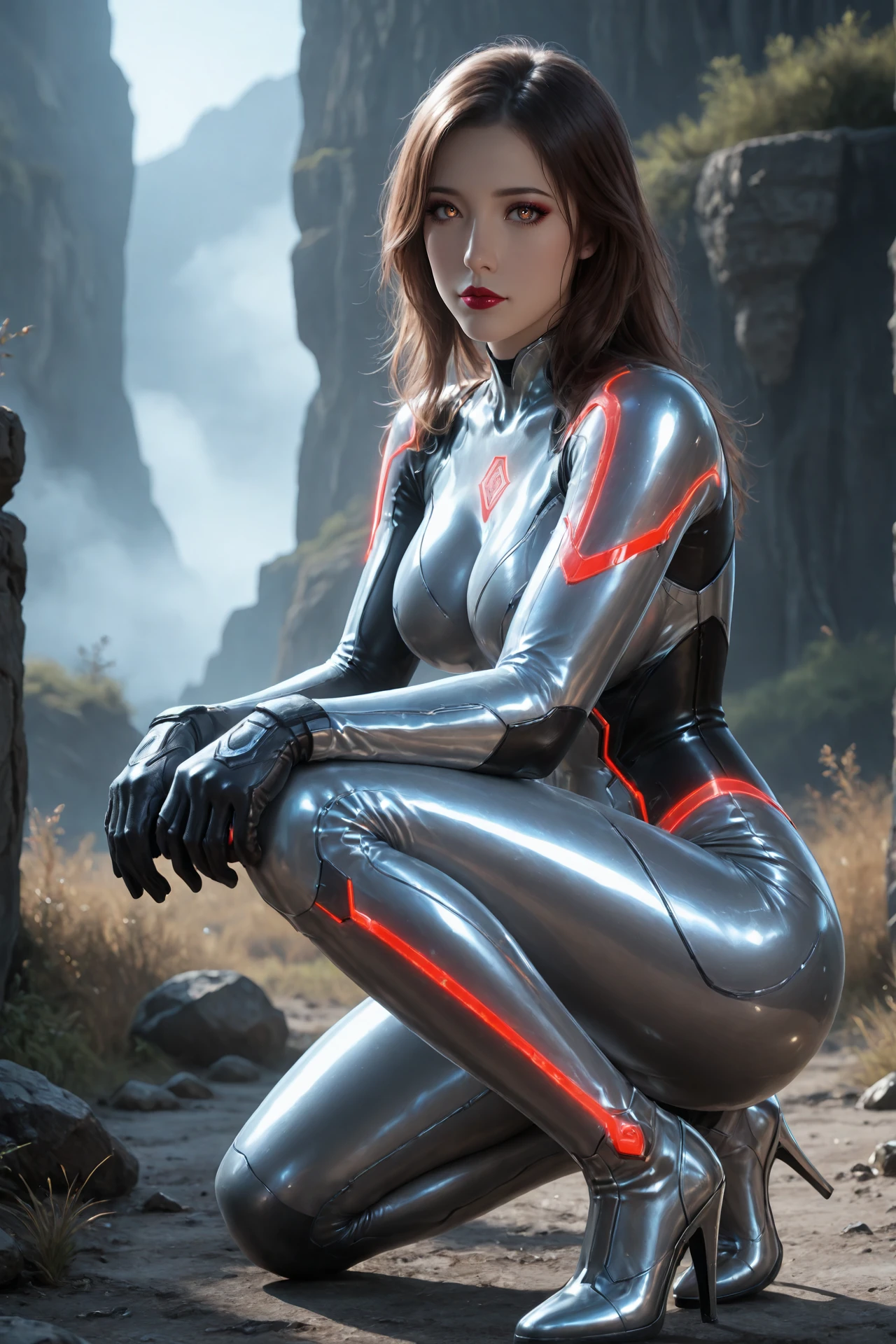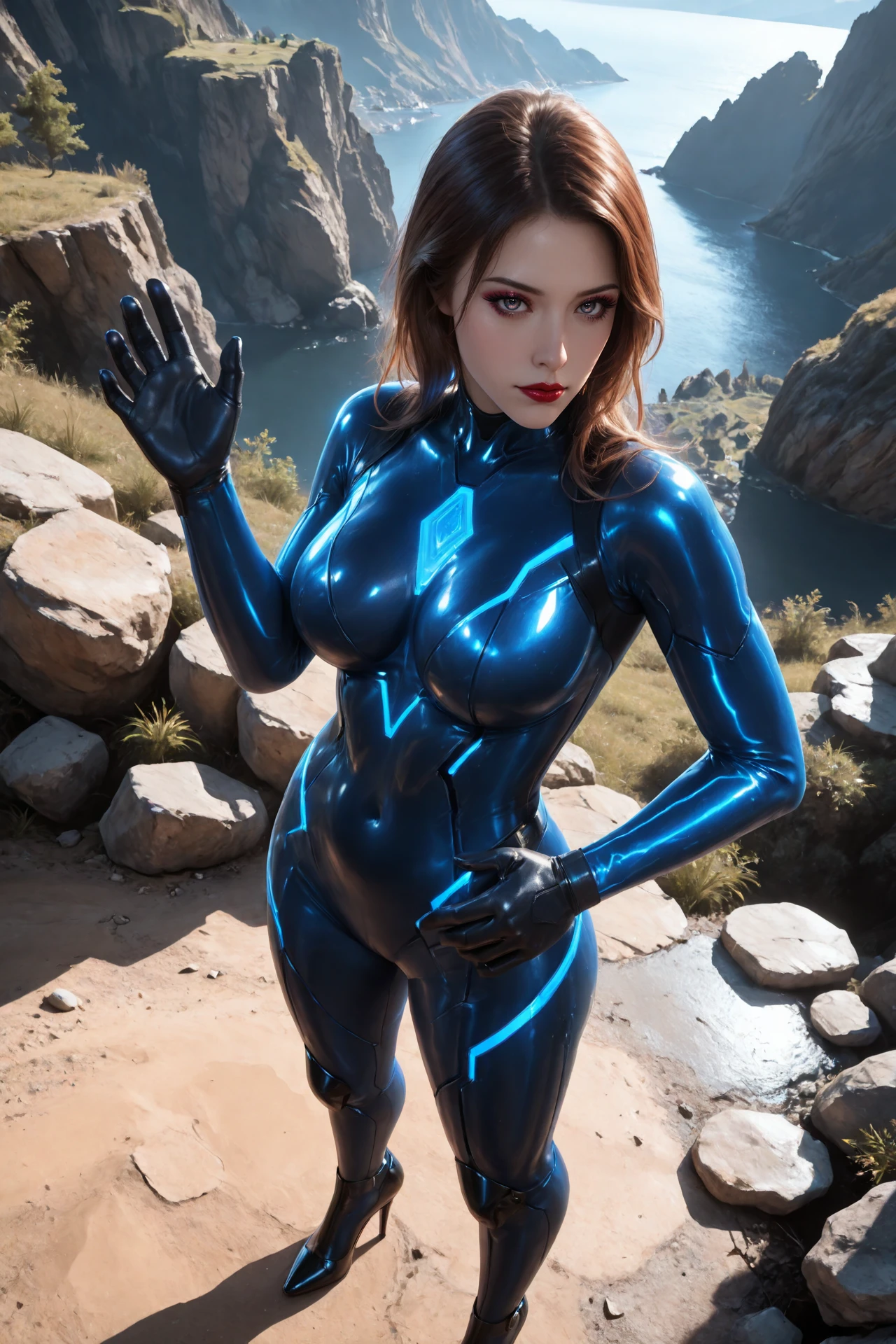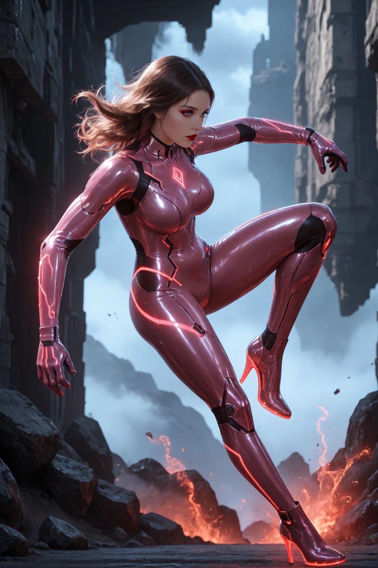 bodysuit,gloves,high_heels, large_breasts,skin_tight,glowing trim,