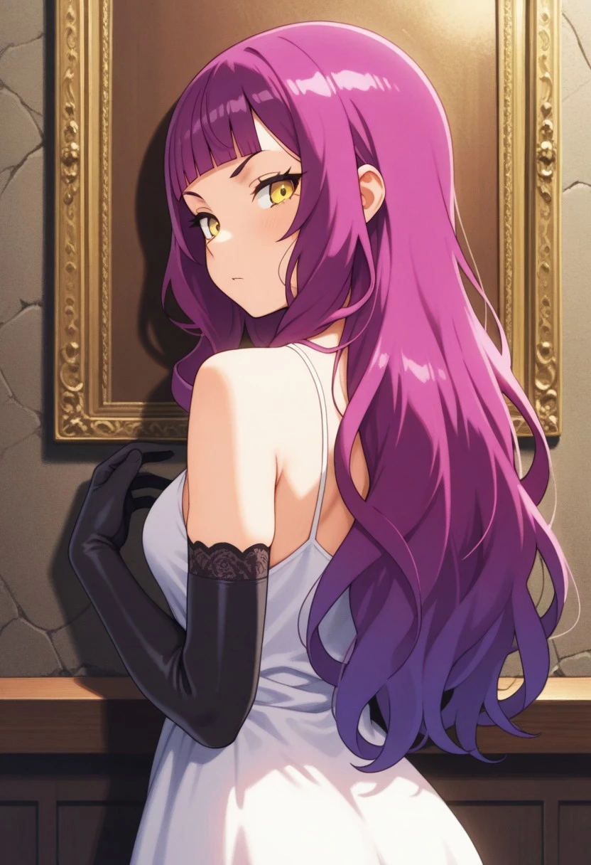 Trigger Words: memil barbatos, long hair, purple hair, yellow eyes