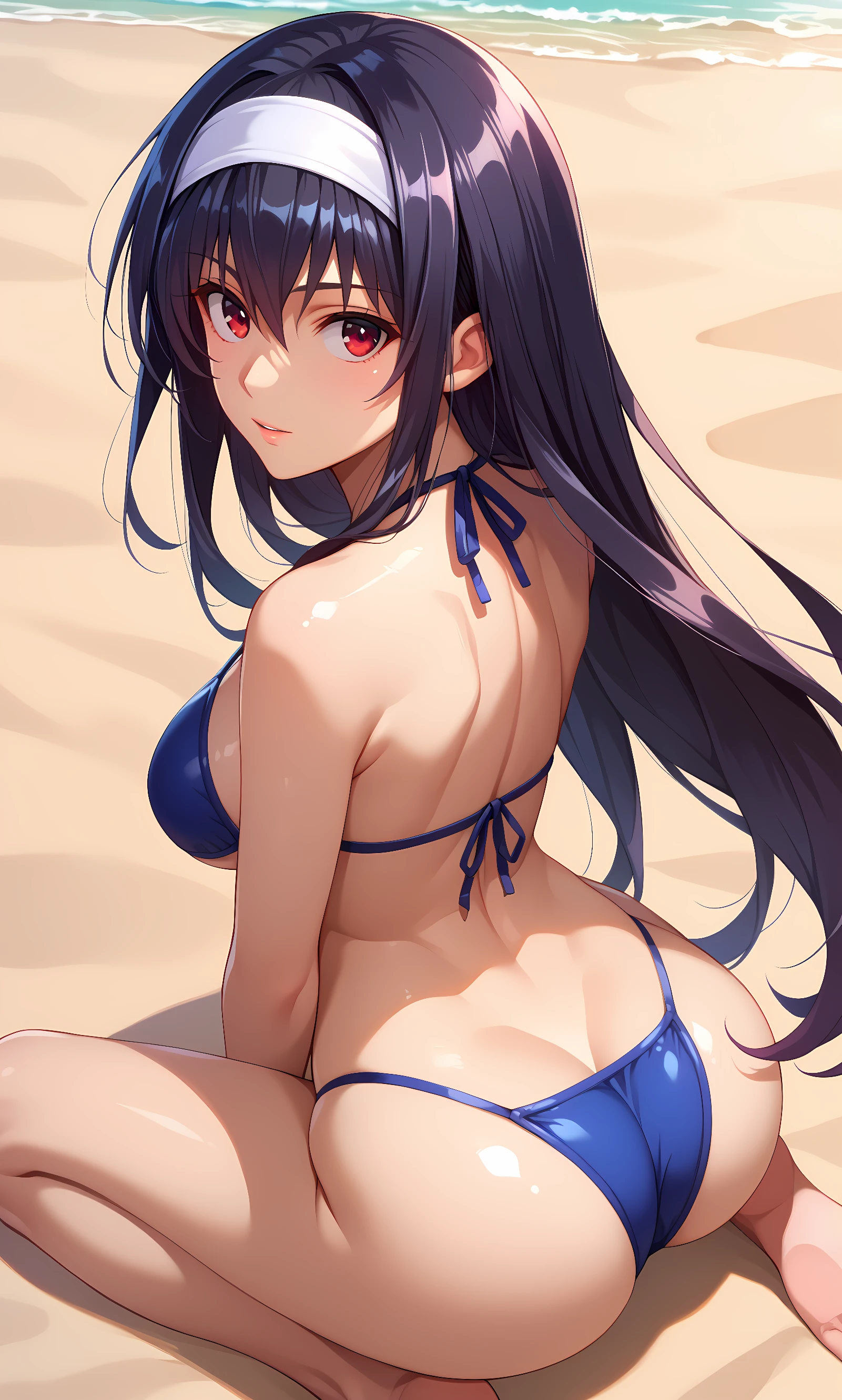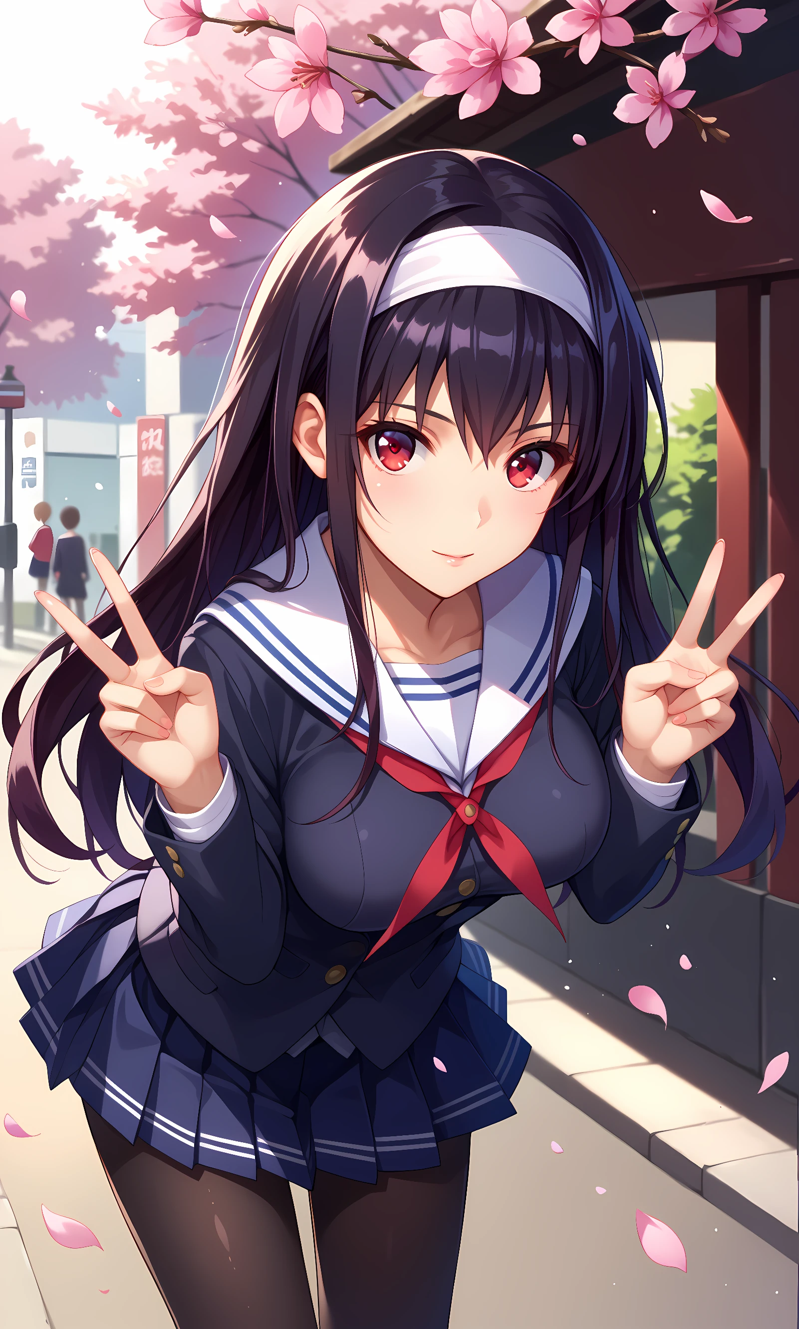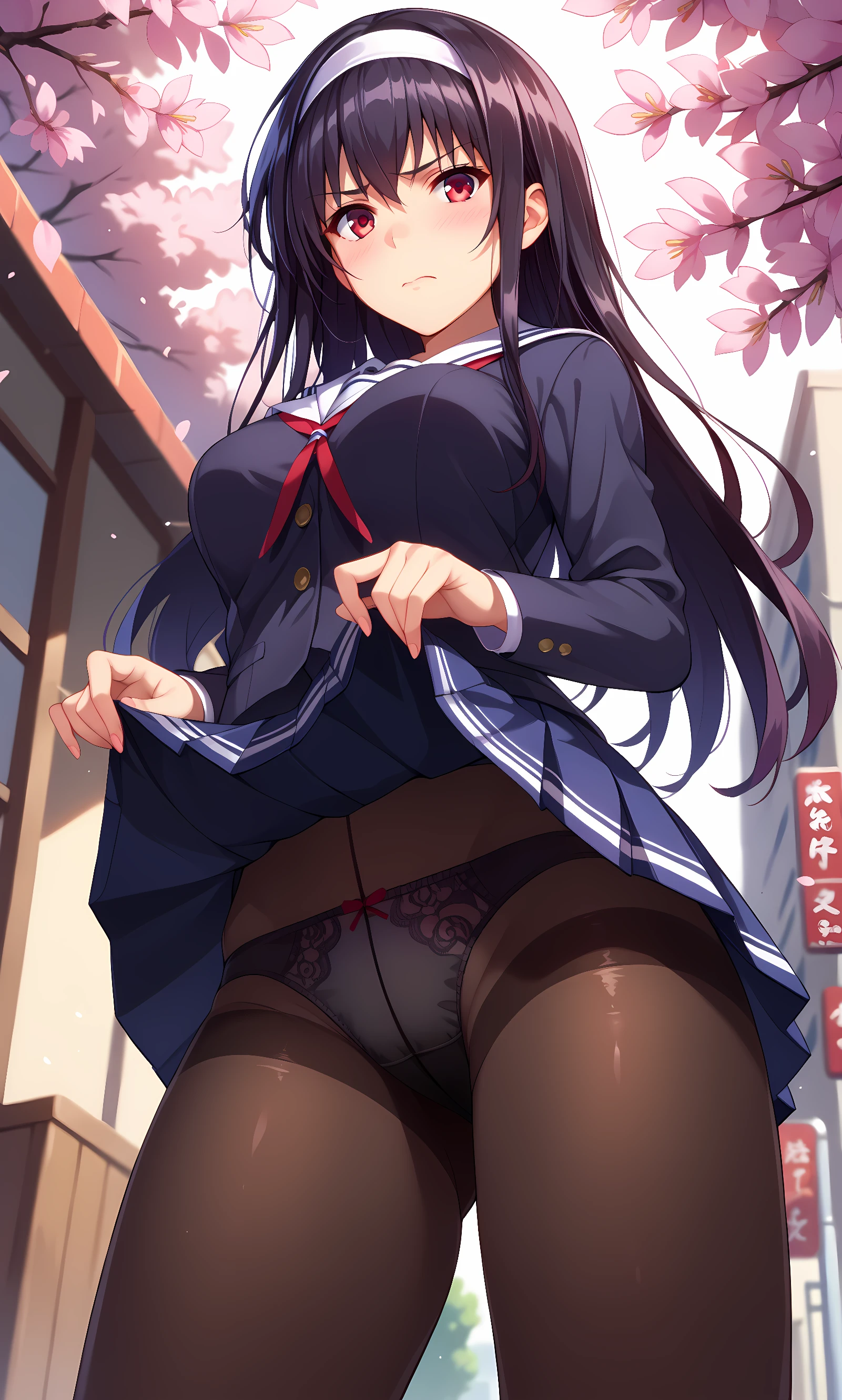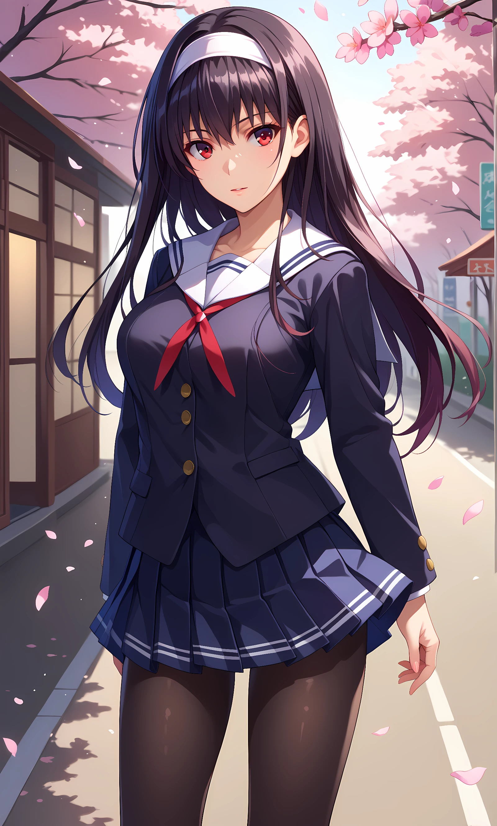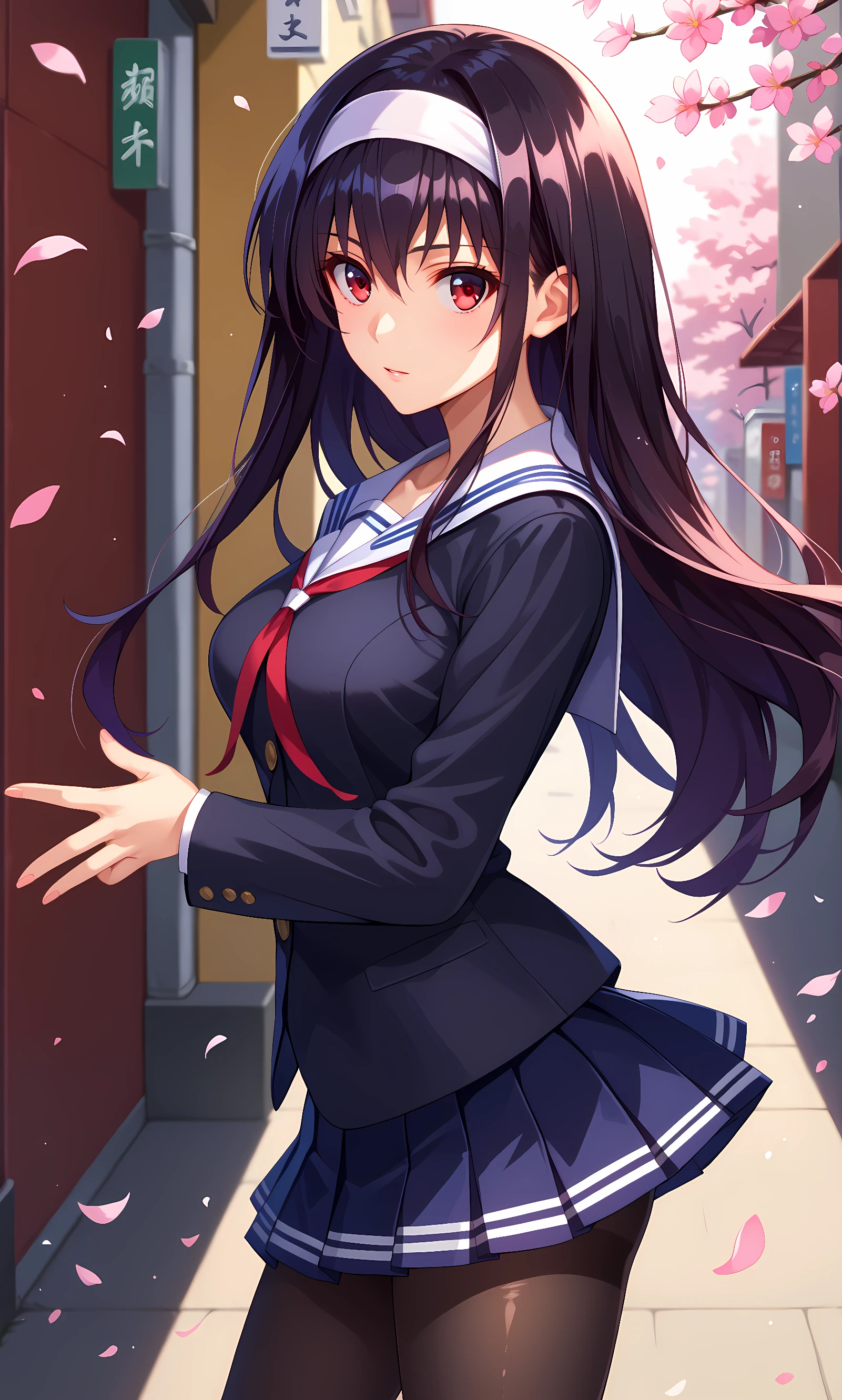 kasumigaoka_utaha, red eyes, black hair, hair between eyes, white hairband, long hair, sidelocks, very long hair