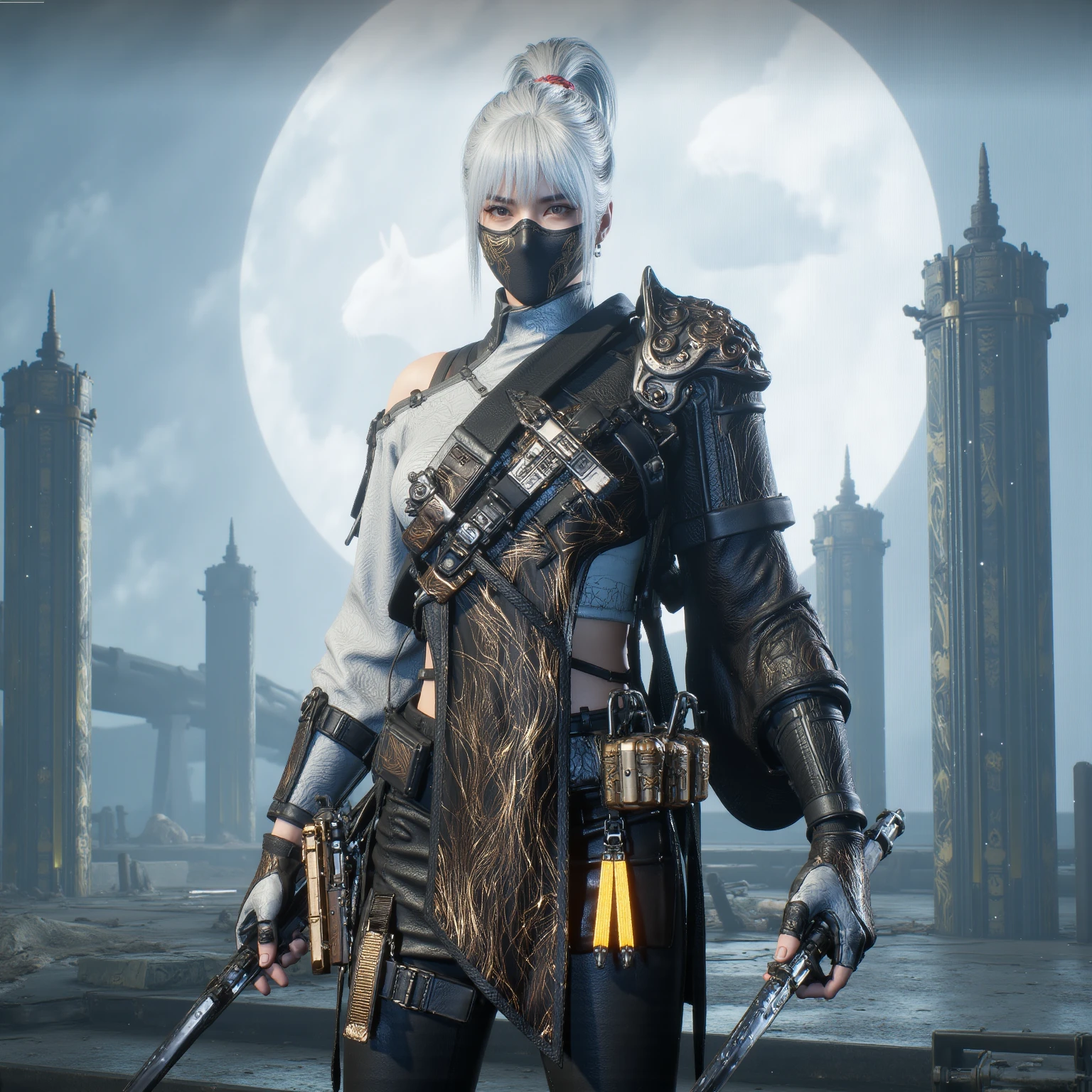 Trigger words: maixiaowen, white hair, mask (All three trigger words must be enabled simultaneously!)