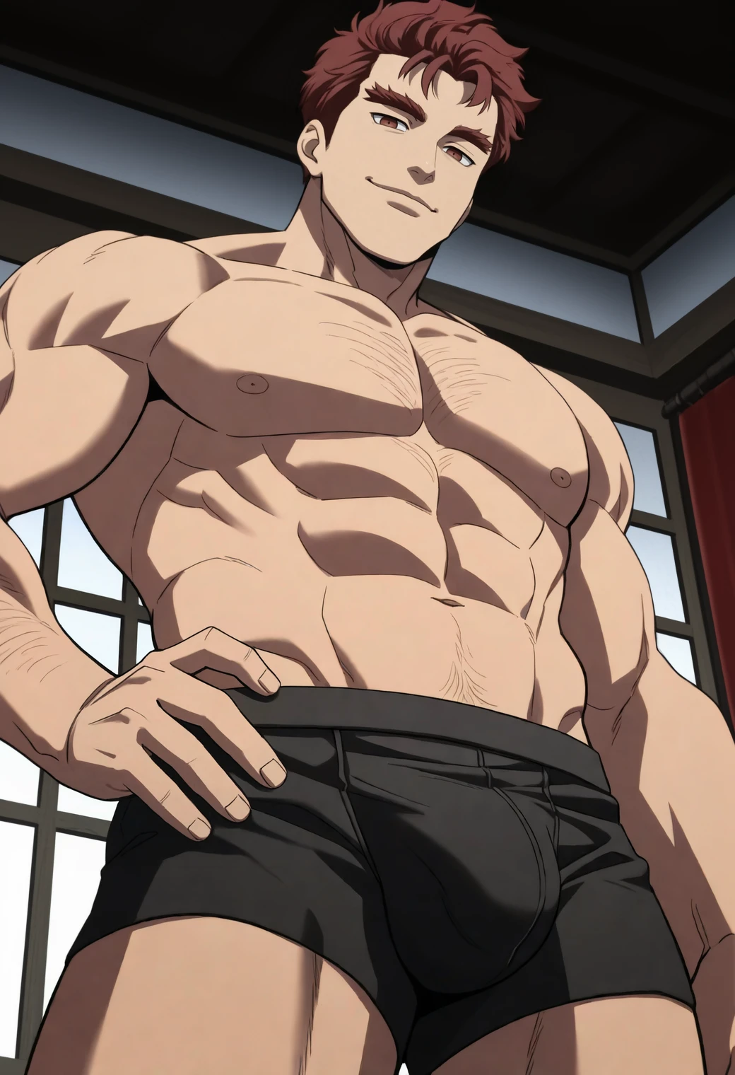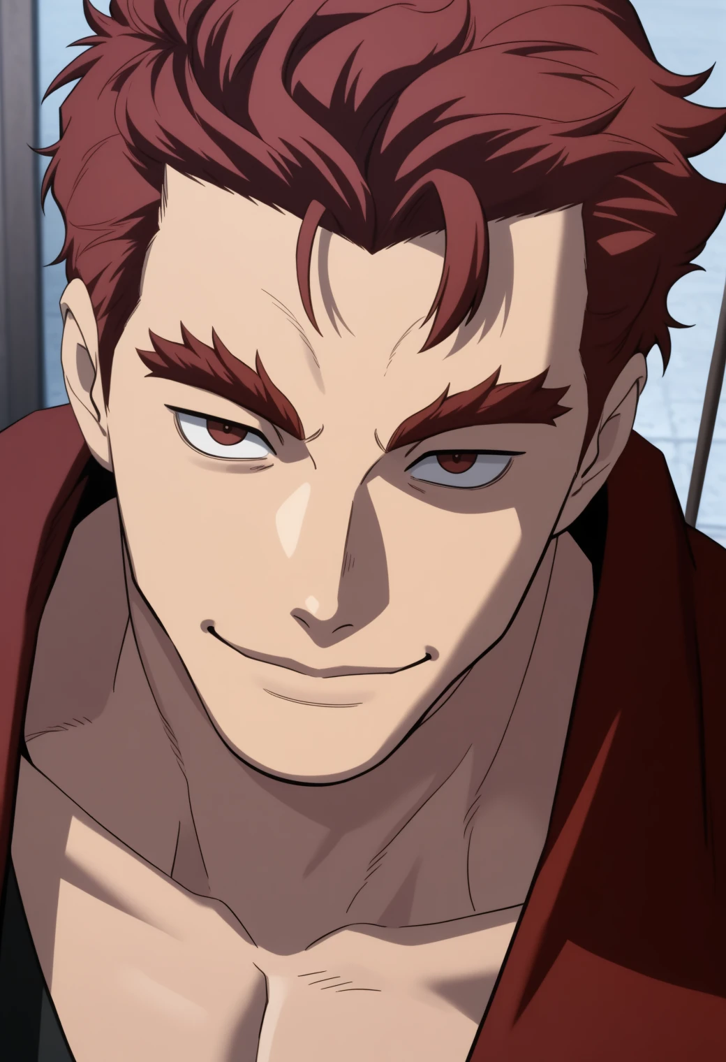 15htv4n,red hair,red eyes,short hair,thick eyebrows,Auxiliary Tags: