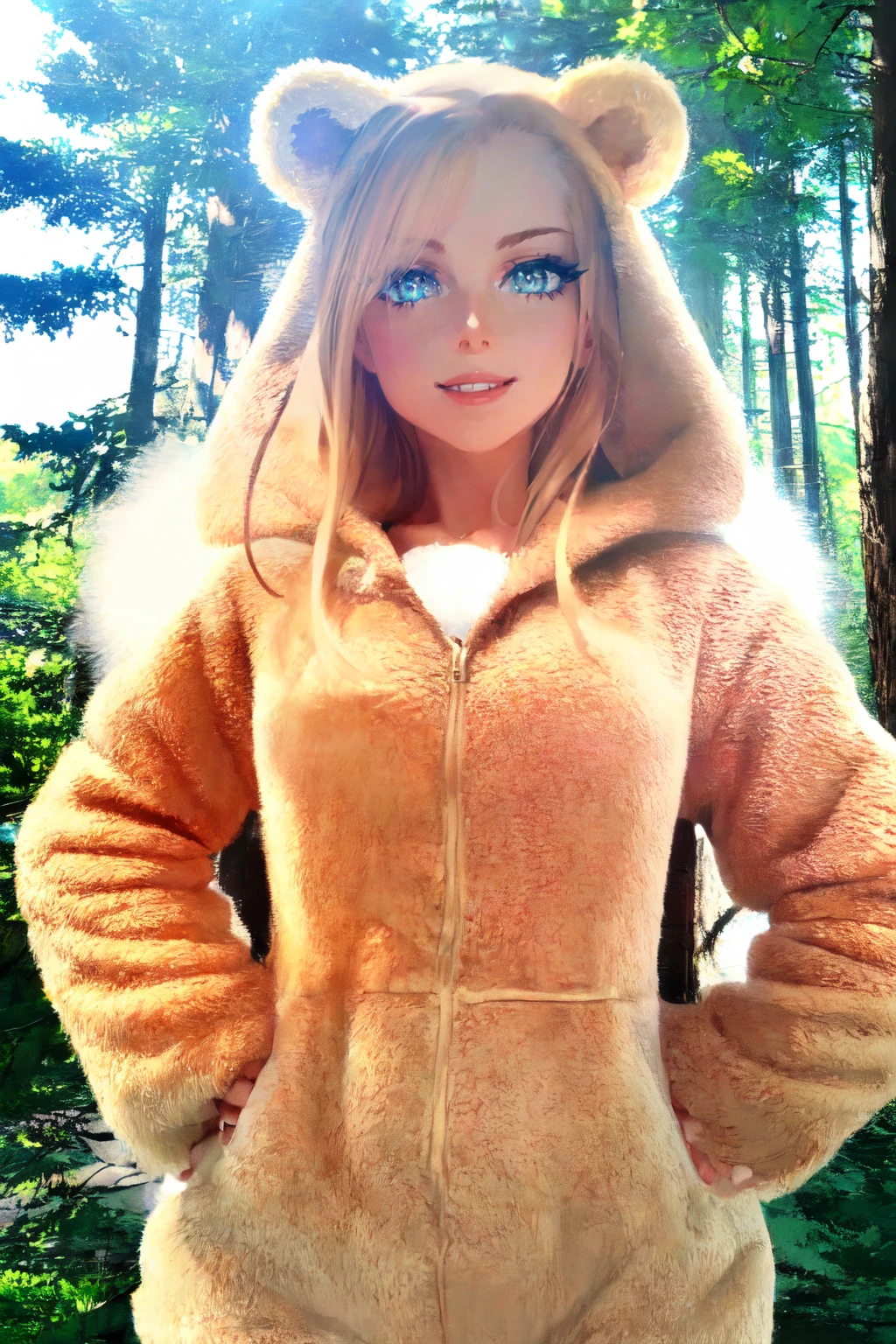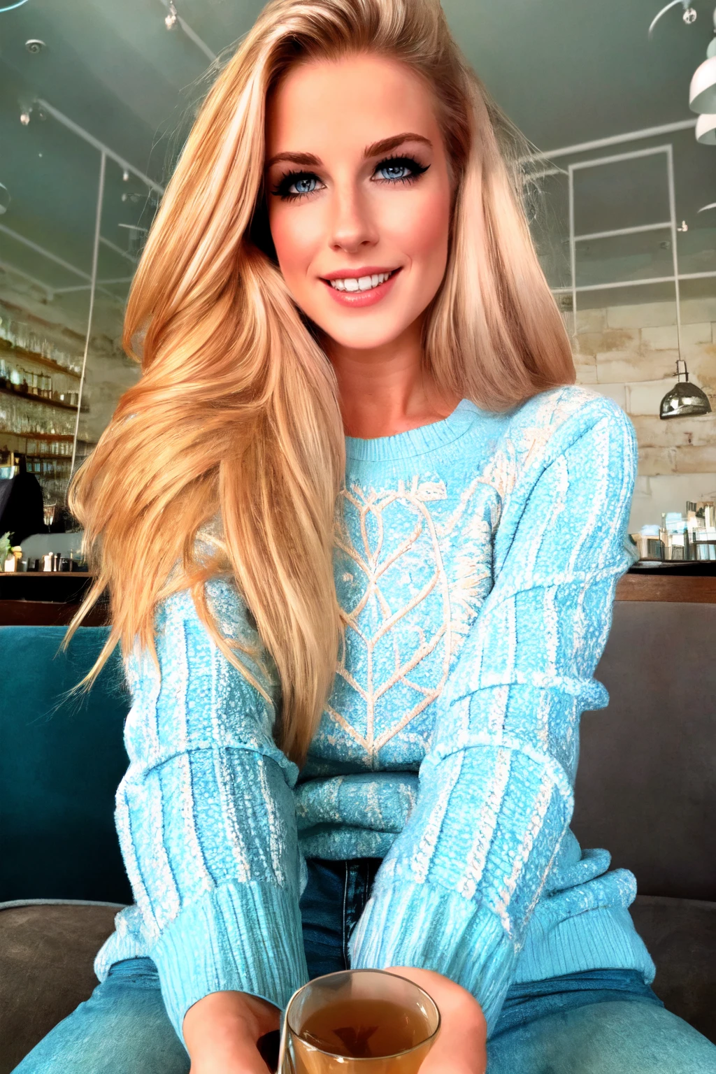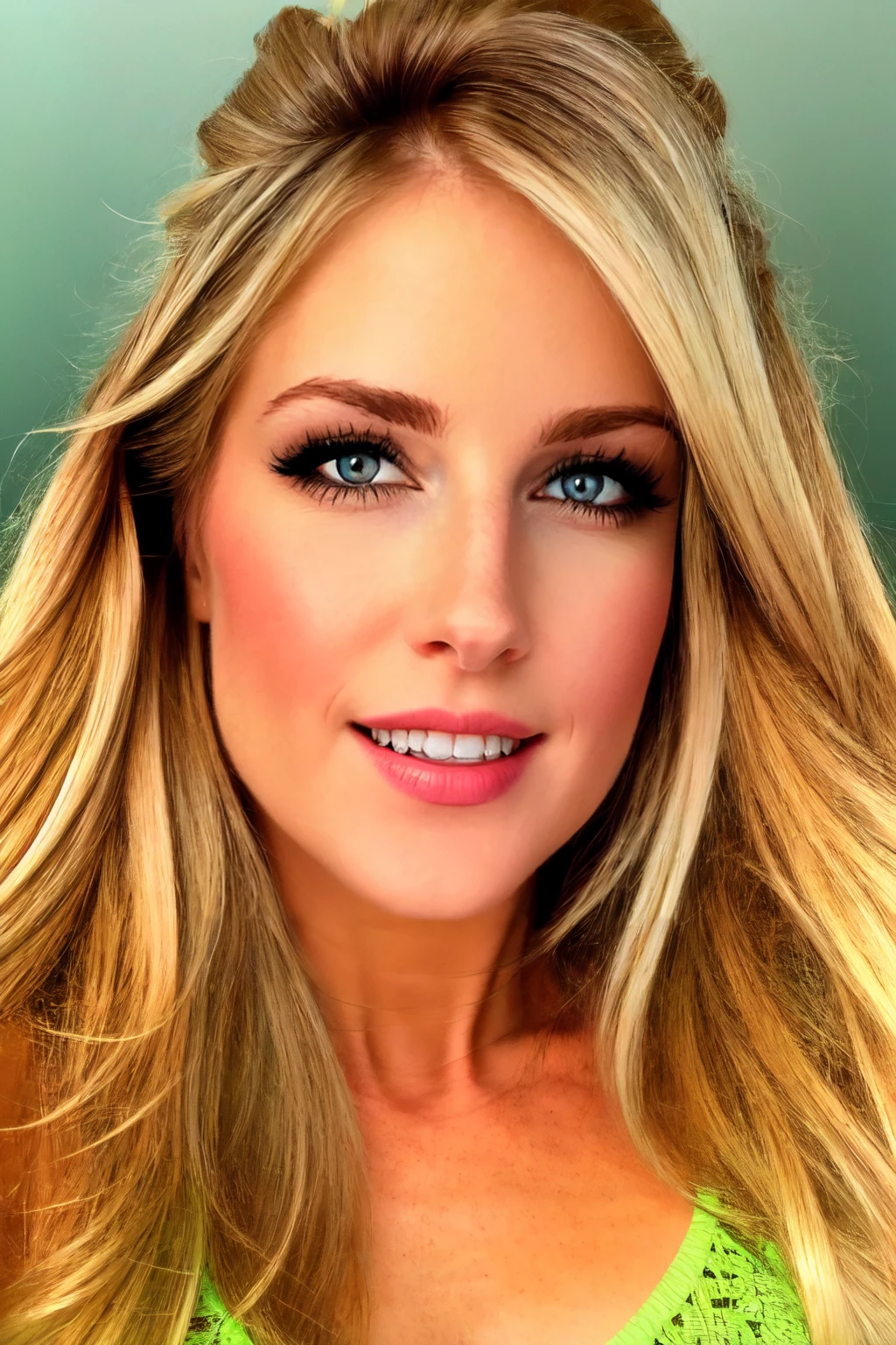 1girl, solo, realistic, long hair, blonde hair, lips, looking at viewer, smile, blue eyes, jewelry, teeth