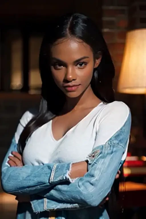Sample prompt/Trigger words: Maddie Wachowski, brown skin, long black hair, blue denim jacket, yellow undershirt
