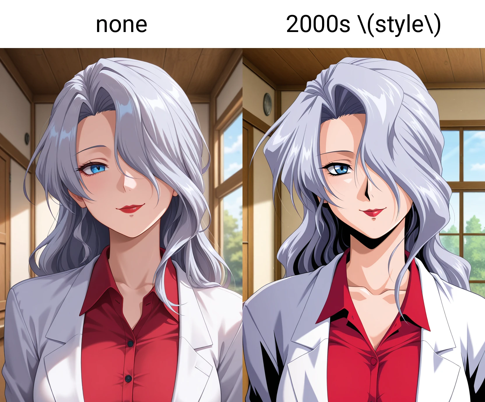 プロンプトに "2000s (style)" を使った方が、ゲームの雰囲気に近くなります。