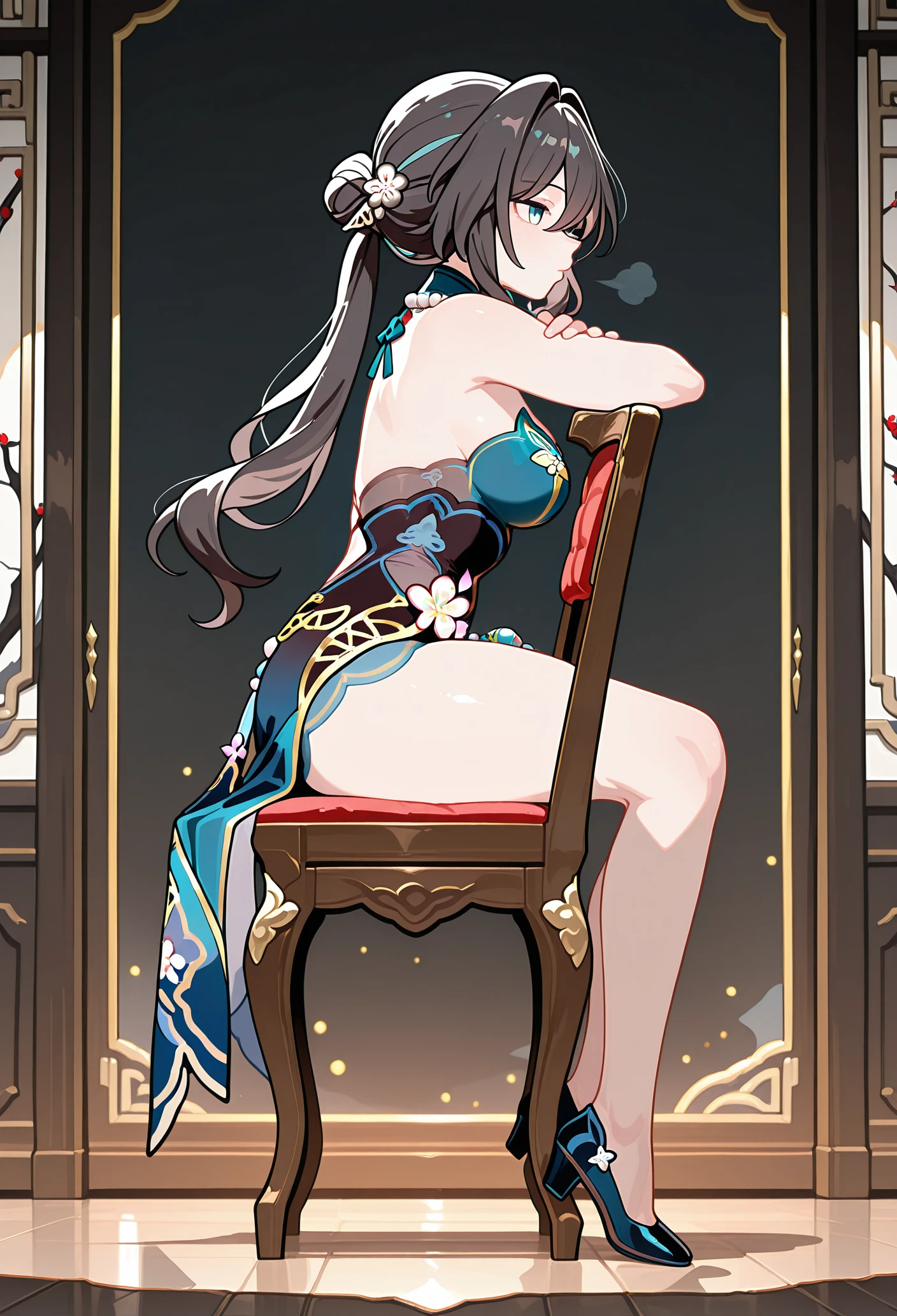 QUICK NOTE : adding tags like from behind, facing viewer, from side, backrest, will help get the angle more often if you're not getting what you want. also try to not add any tags that will contradict with the angle you are aiming for.