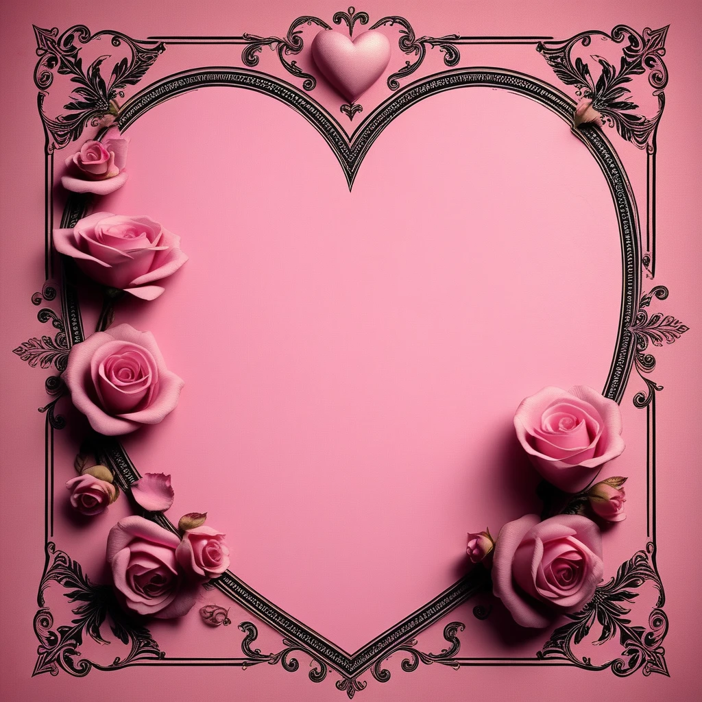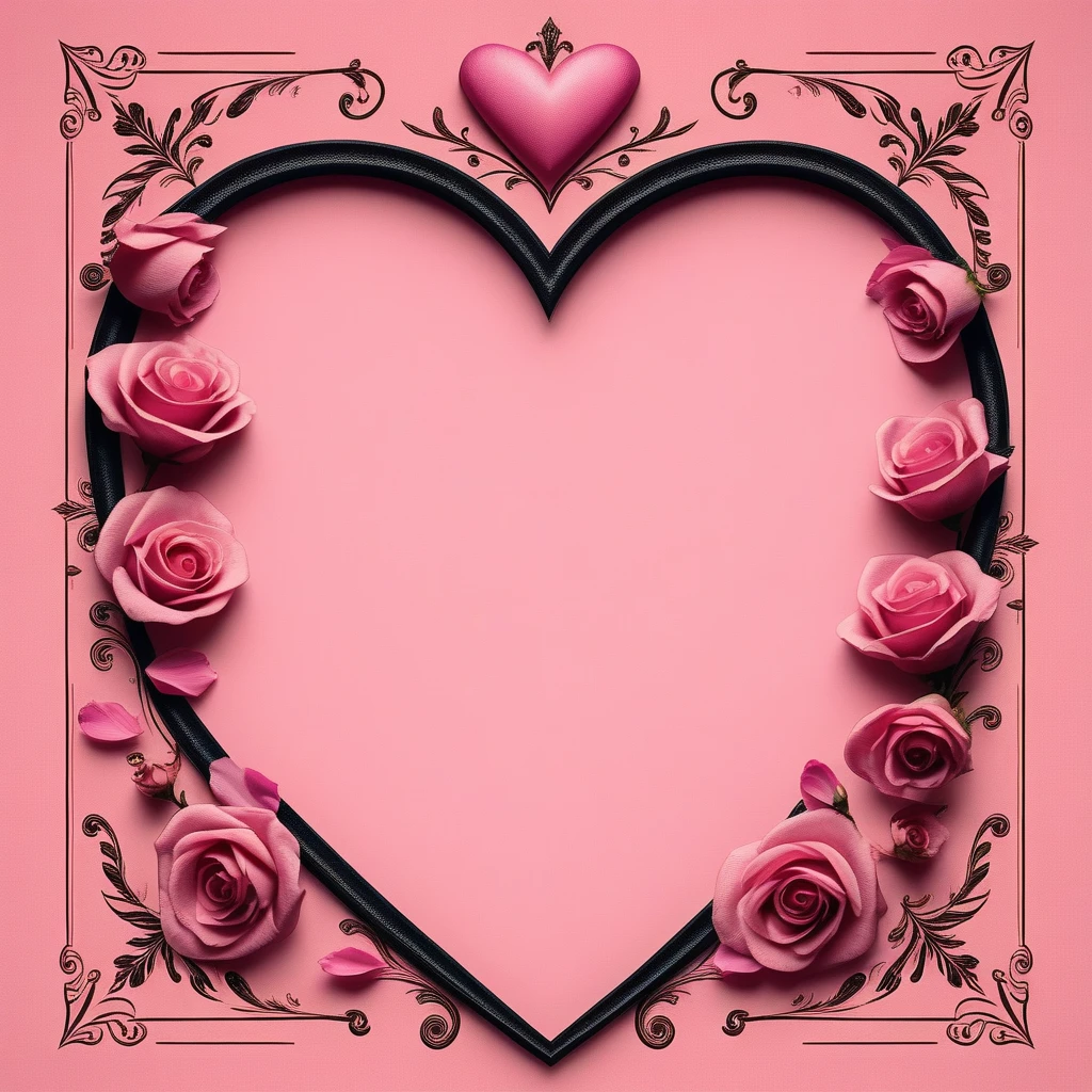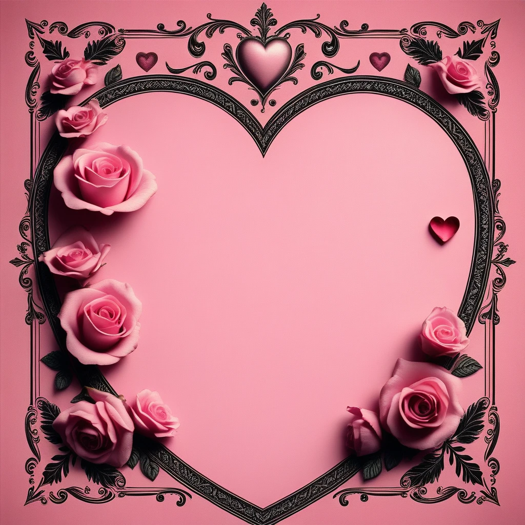 intricate love border, heart-shaped frame, roses and petals border, elegant floral design, vintage-style romantic frame, golden or red accents, soft lighting, artistic engraving